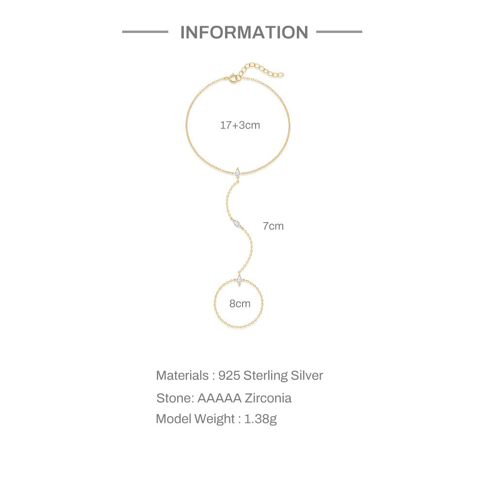 S925 silver bracelet, 18K gold plated sterling silver zircon hand Chain adjustable finger bracelet.