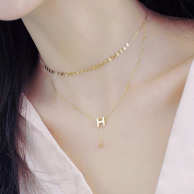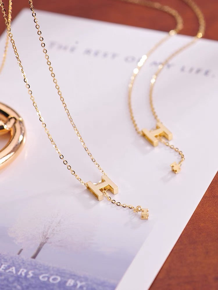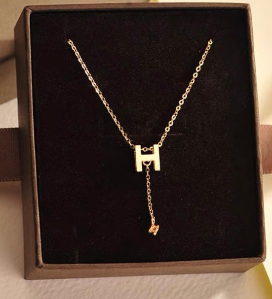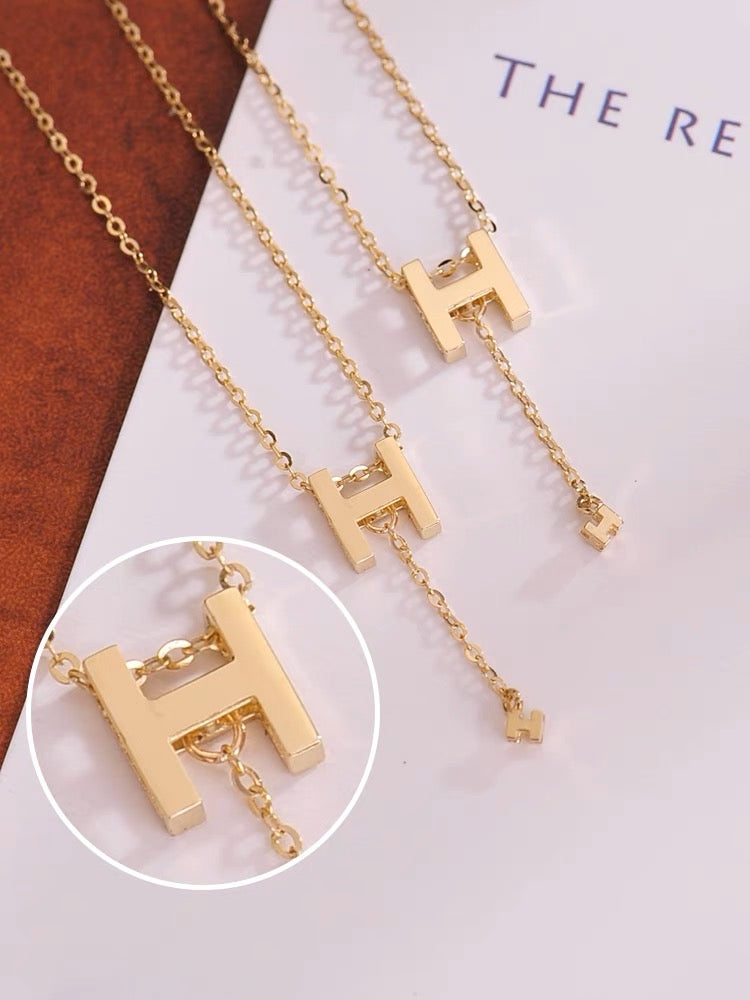 14K Solid Gold H Pendant , Solid gold pendant necklace