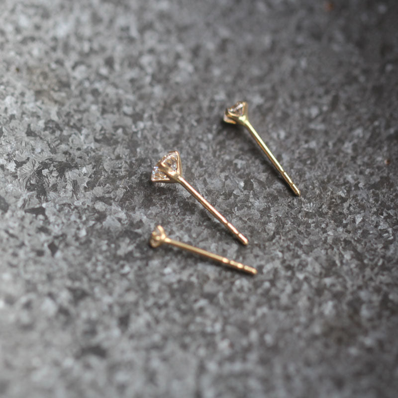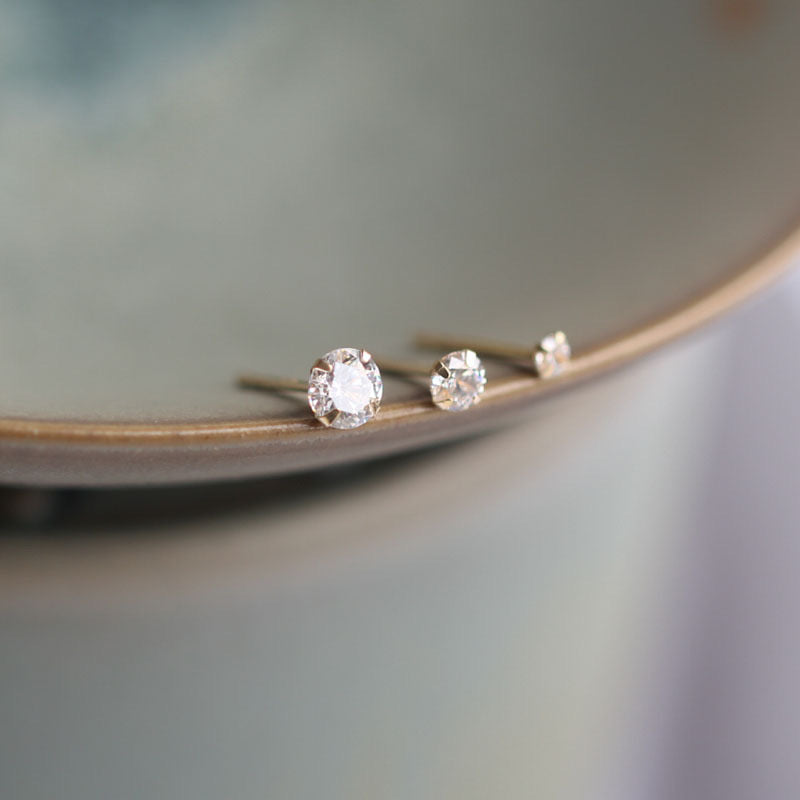 14K Solid Gold CZ Diamond Stud Earrings, 14K Solid Gold Stud Earrings, Solid gold stud earrings