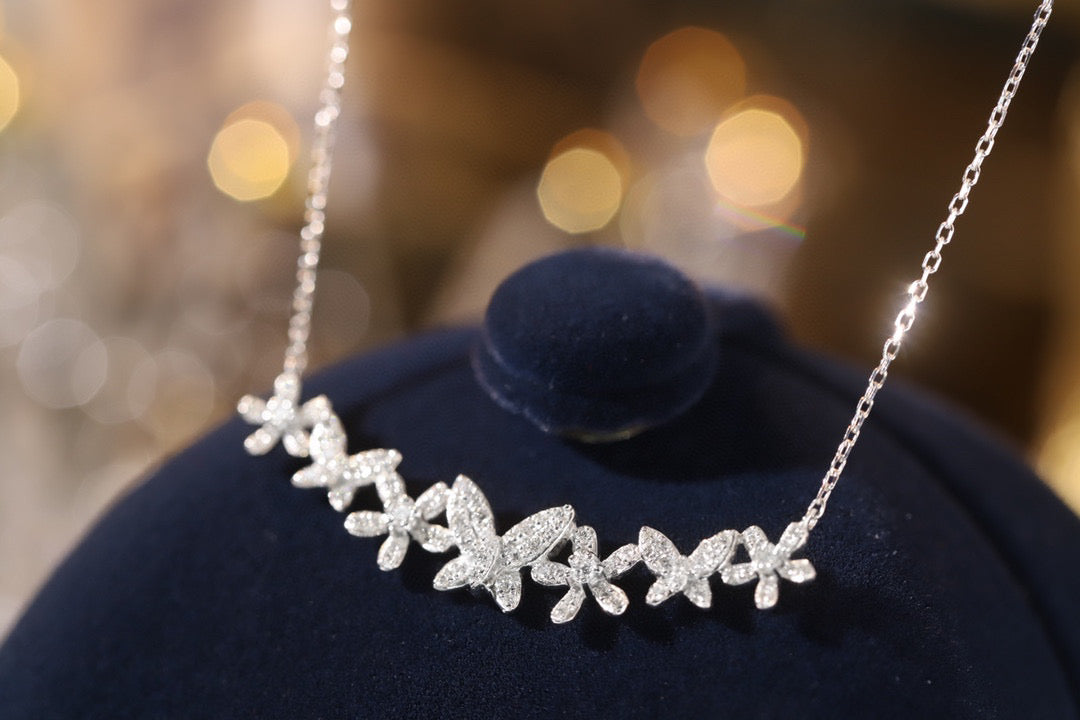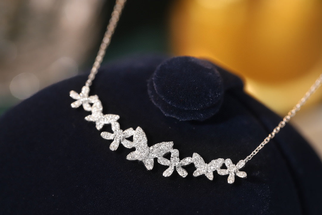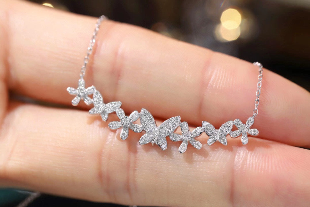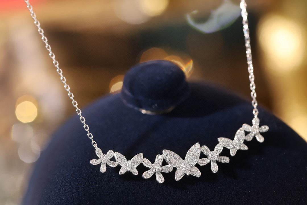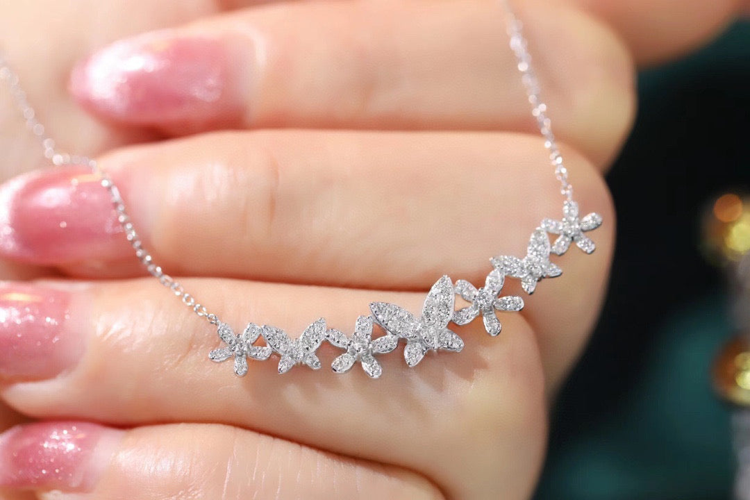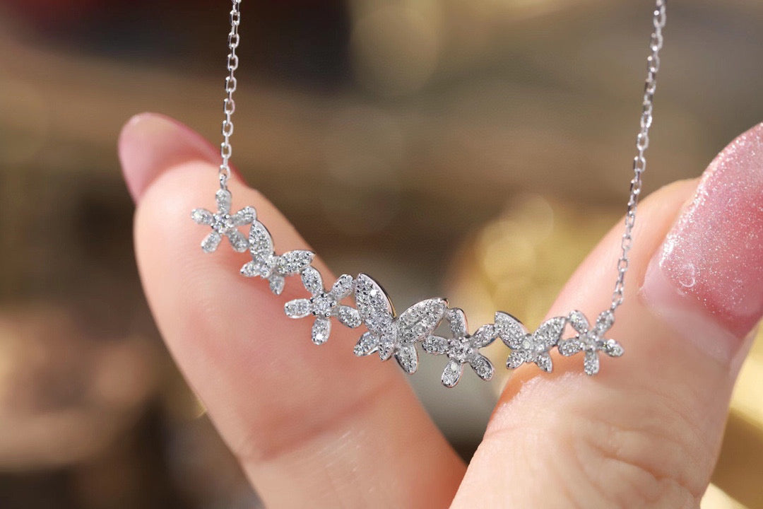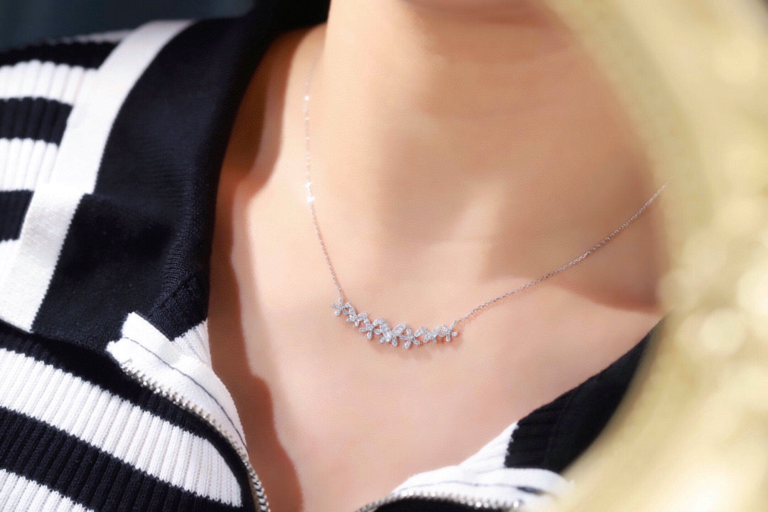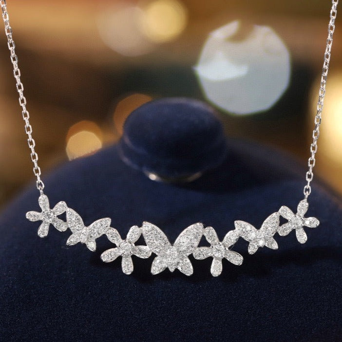 18K Solid Gold Full Diamond Butterfly Flowers Necklace, wedding necklace