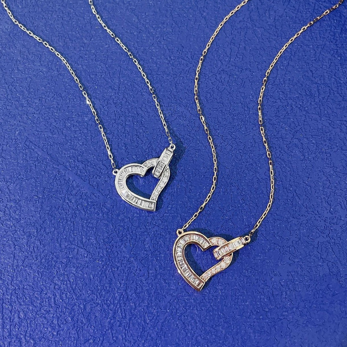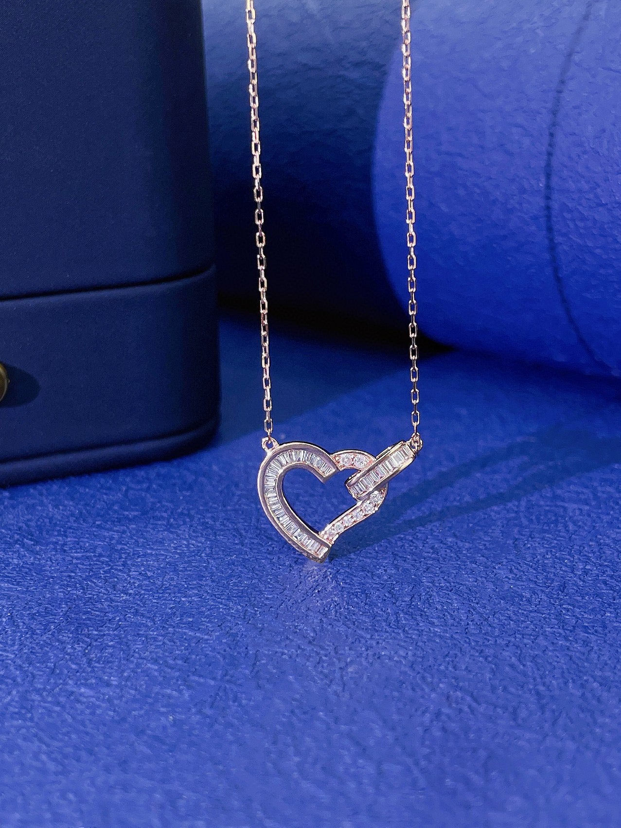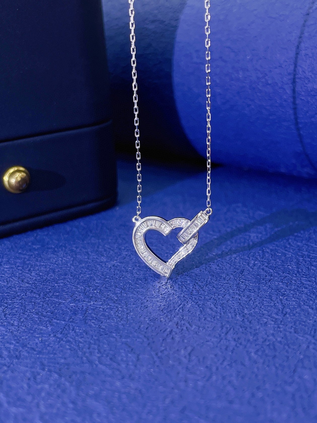 Art Deco 18K Solid Gold Full Diamond Heart Pendant Necklace