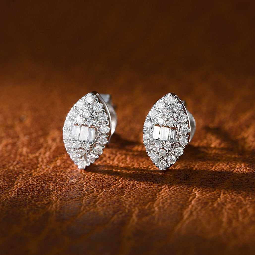 Classic 18K Solid Gold Full Diamond Stud Earrings, Wedding Earrings