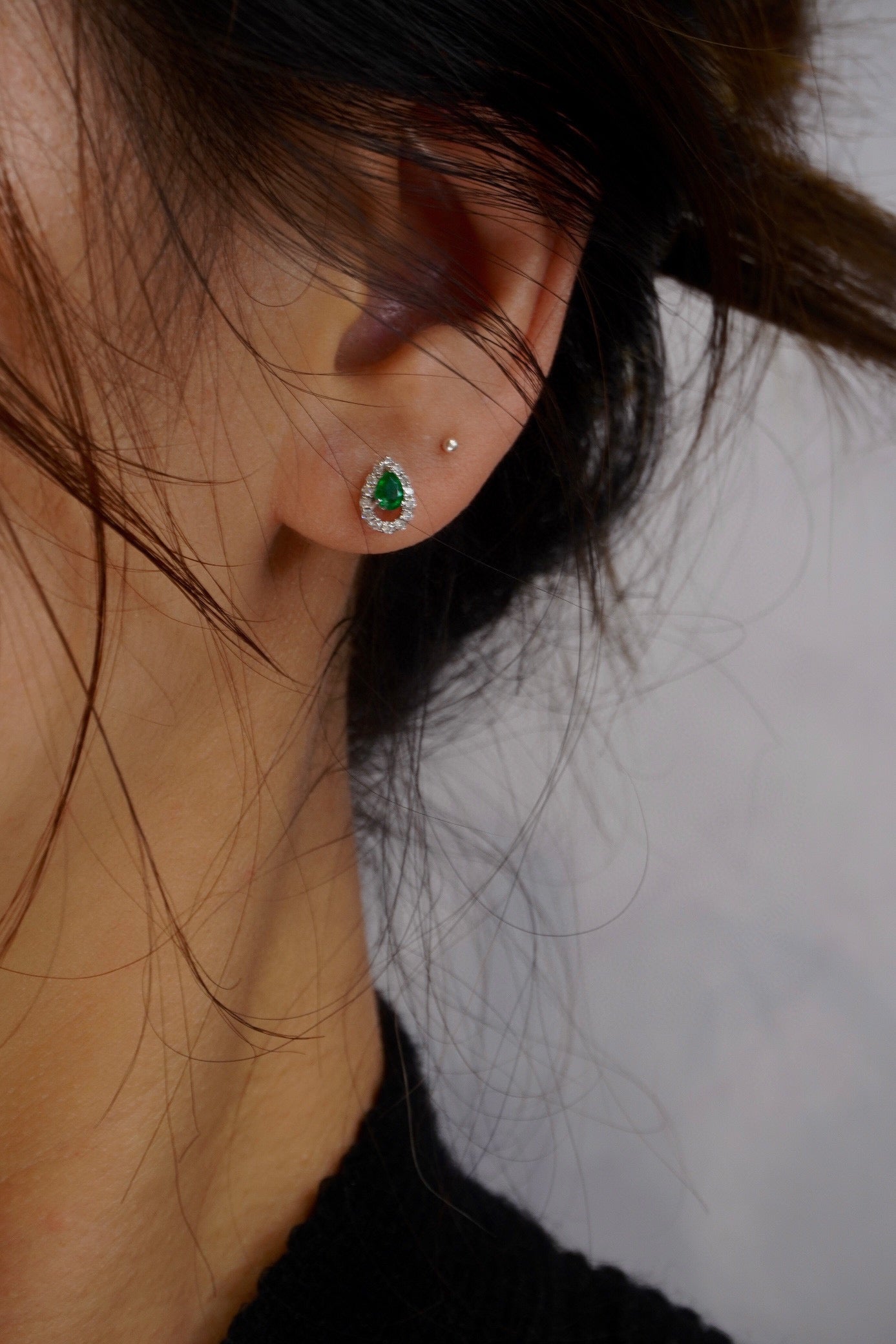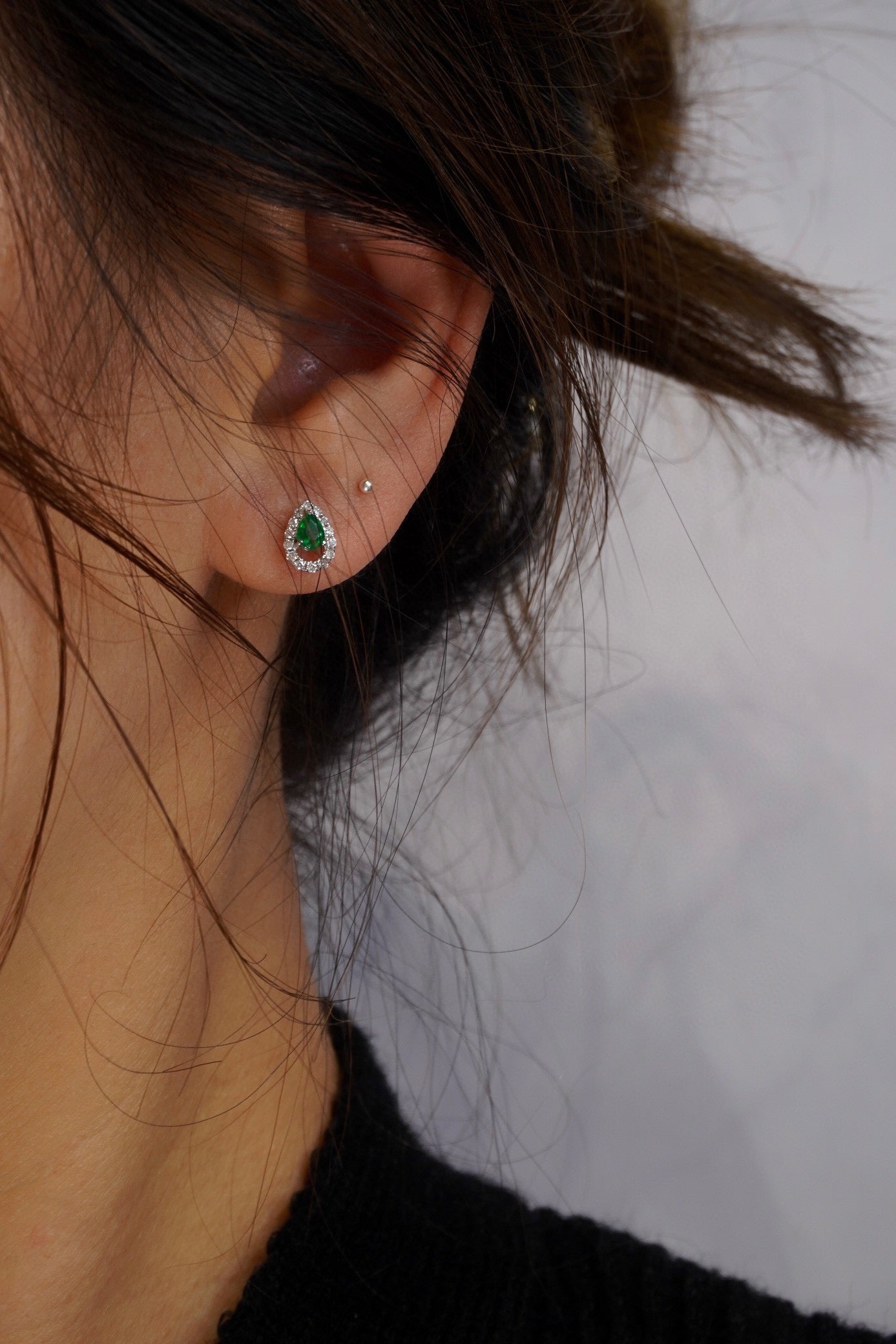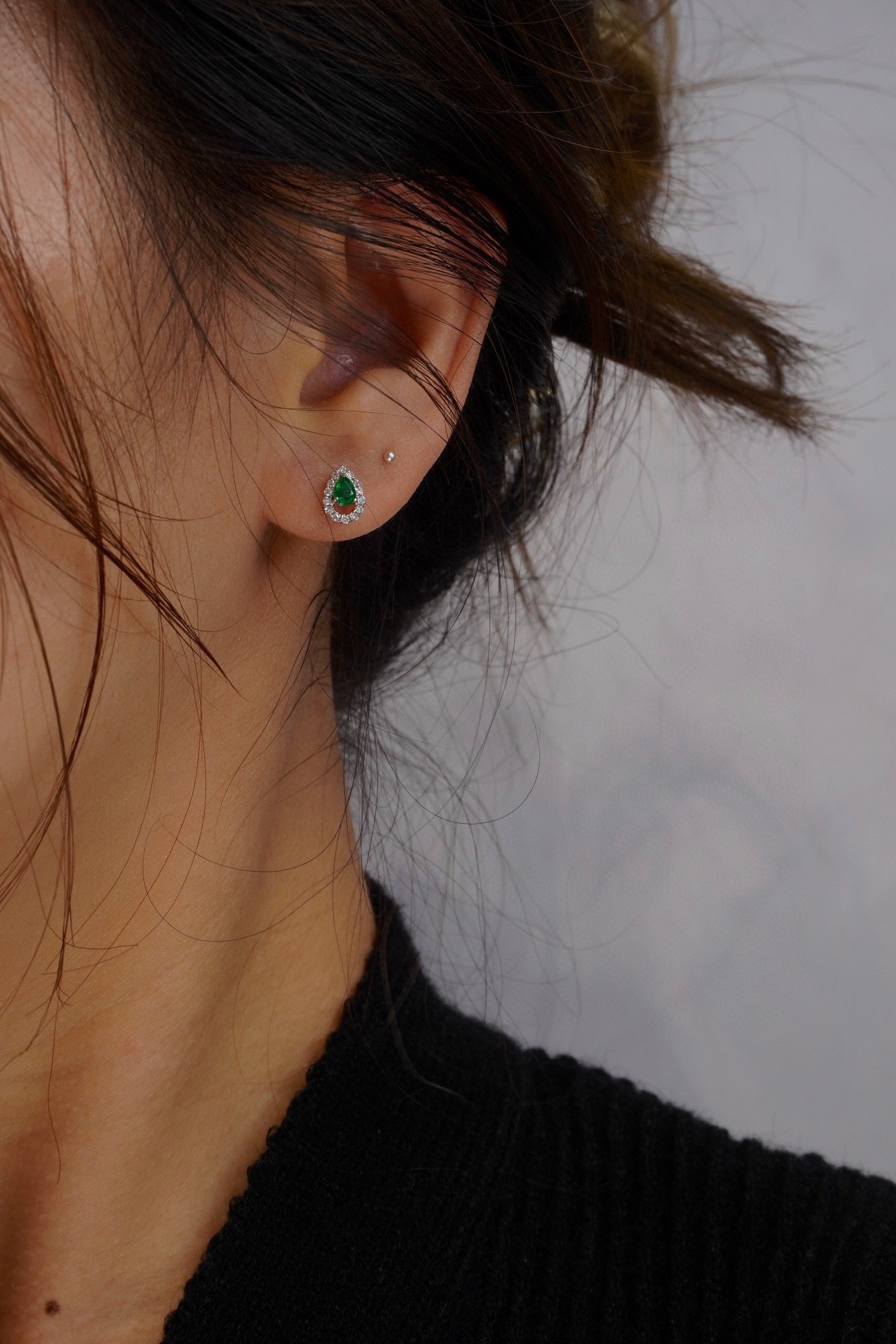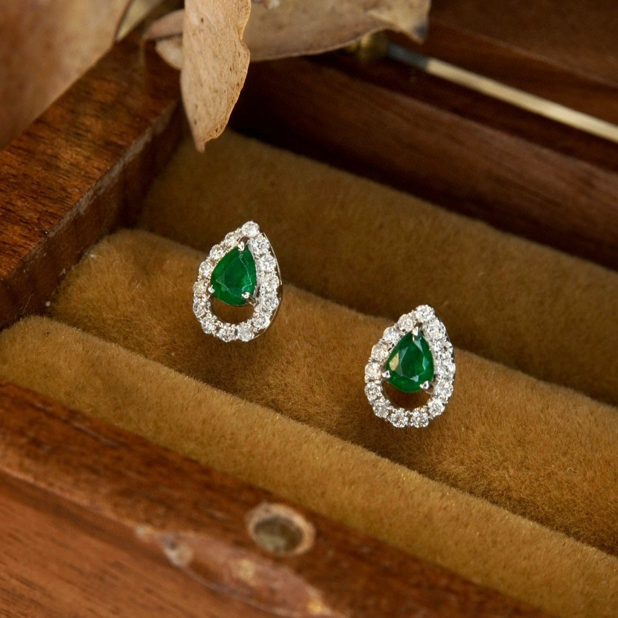 Classic 18K Solid Gold Genuine Emerald Diamond Stud Earrings