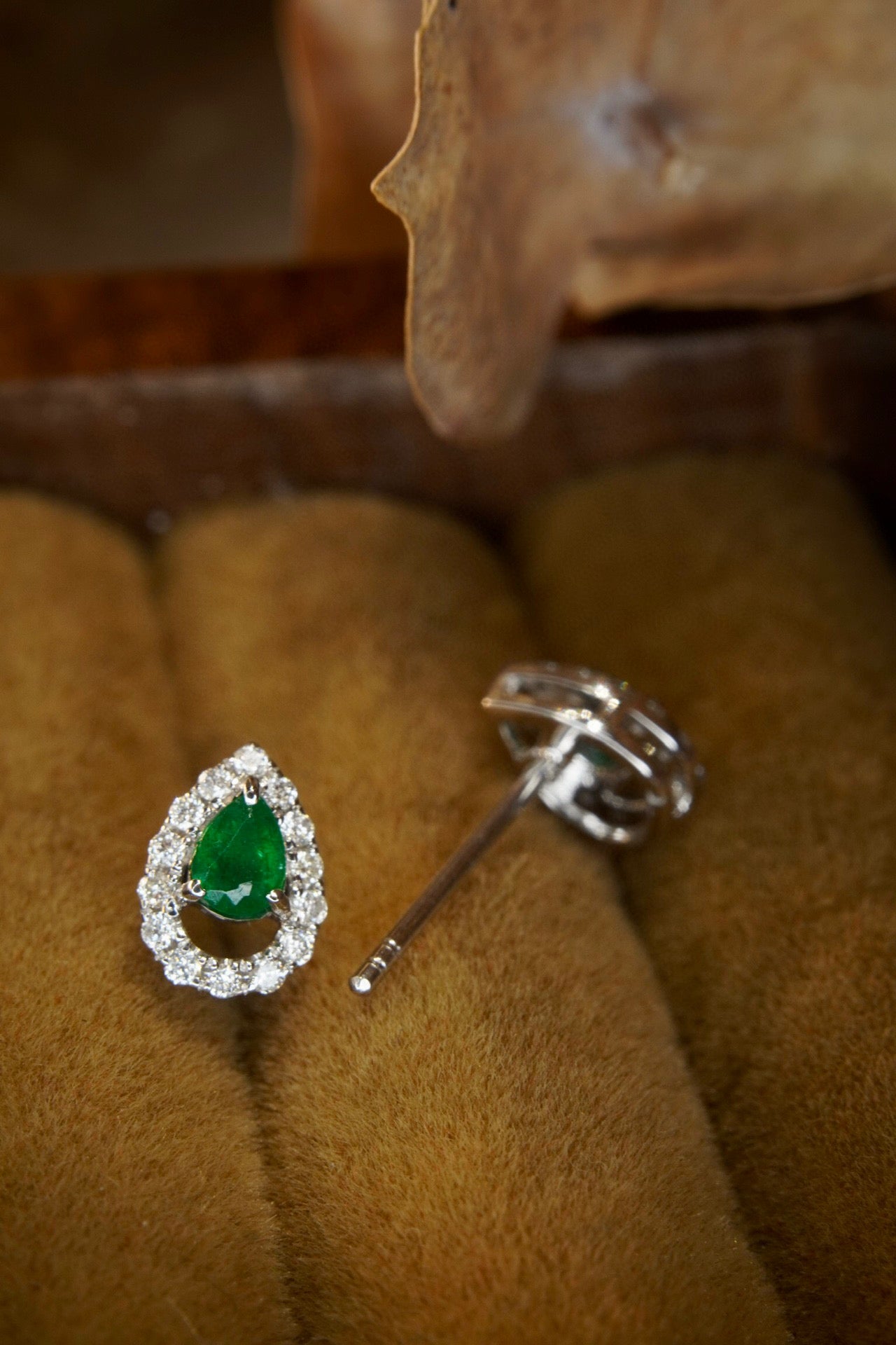 Item: Vintage 18K solid Gold Real Emerald and Diamond Stud Earrings with certification