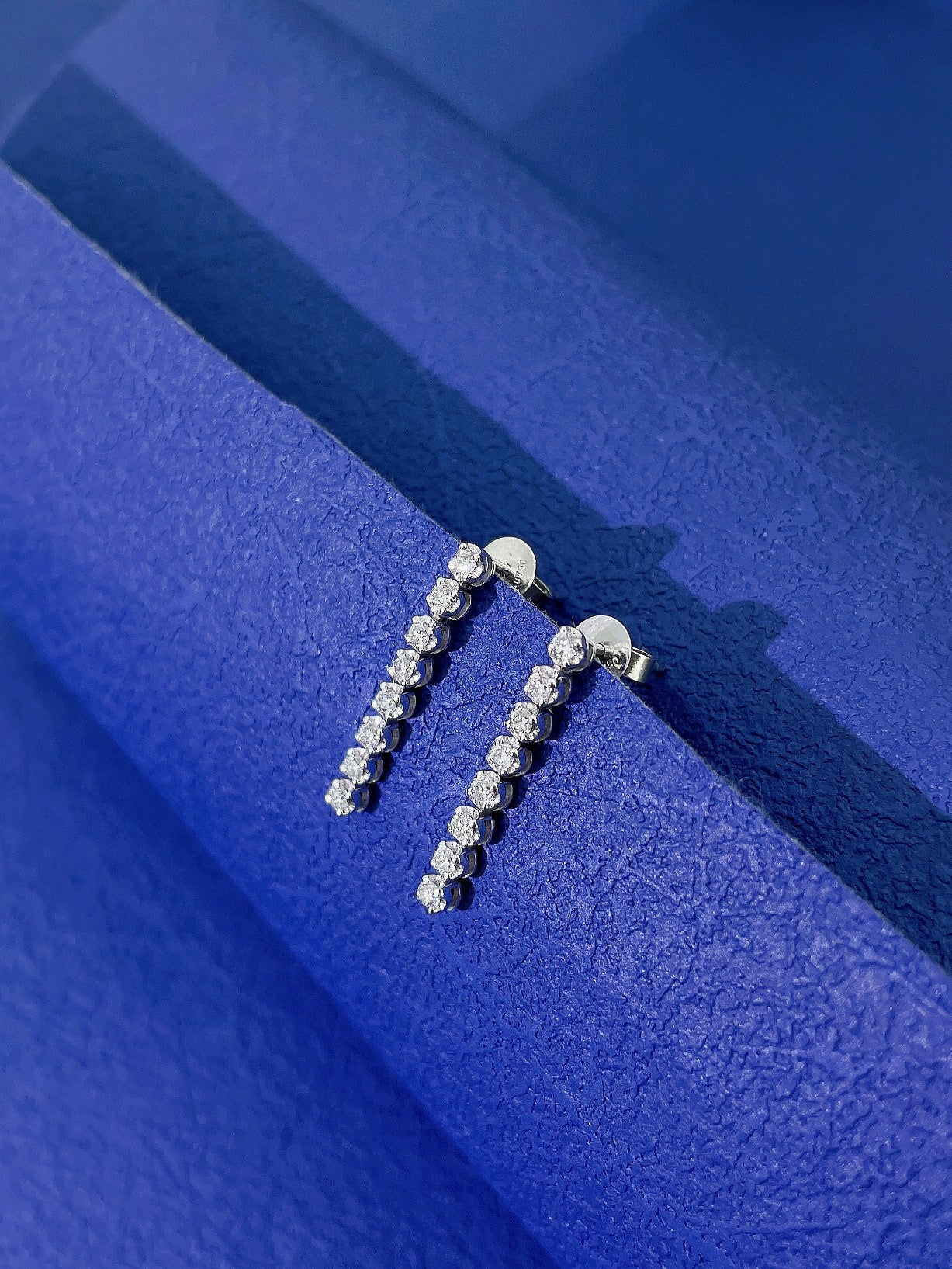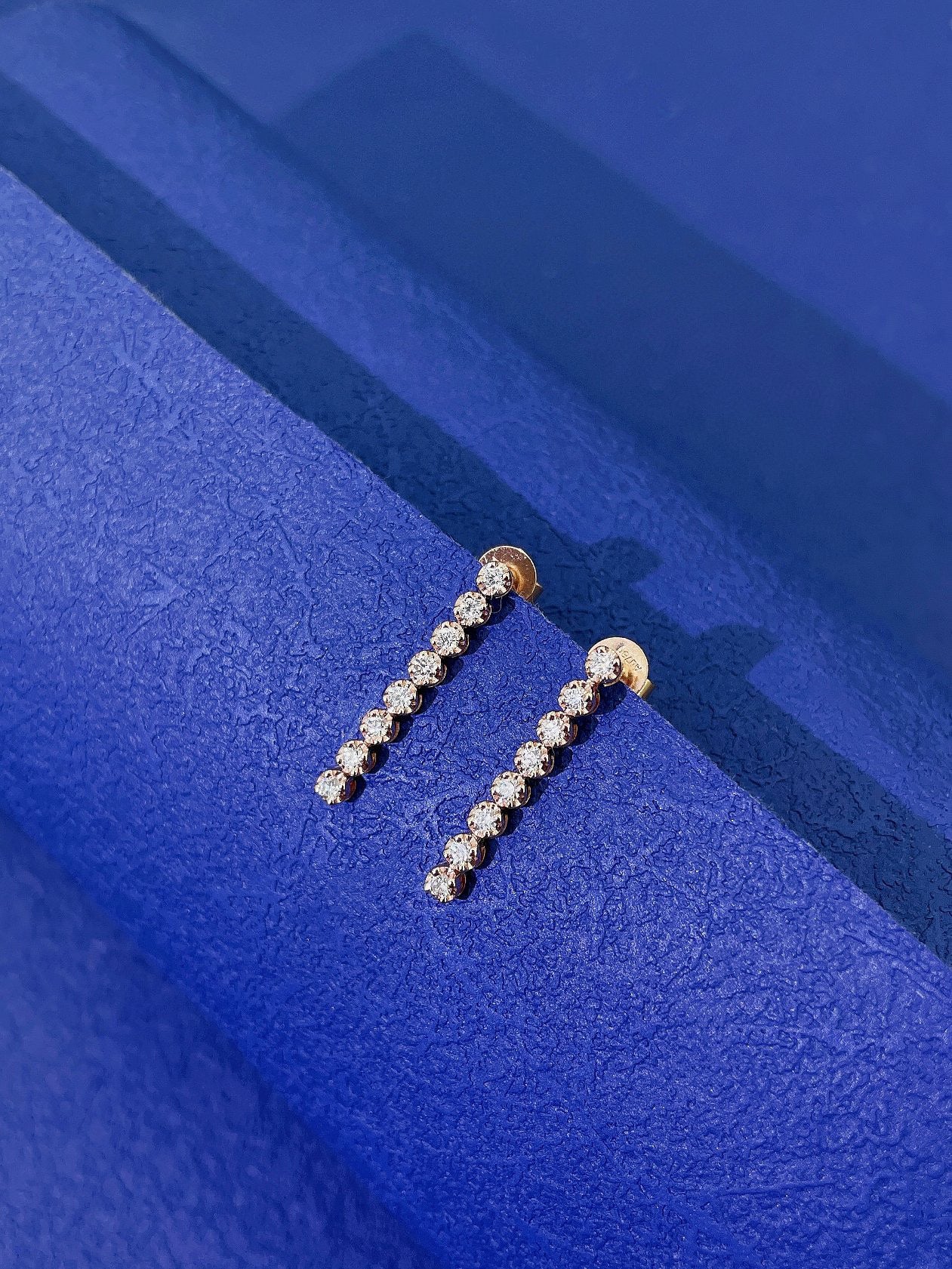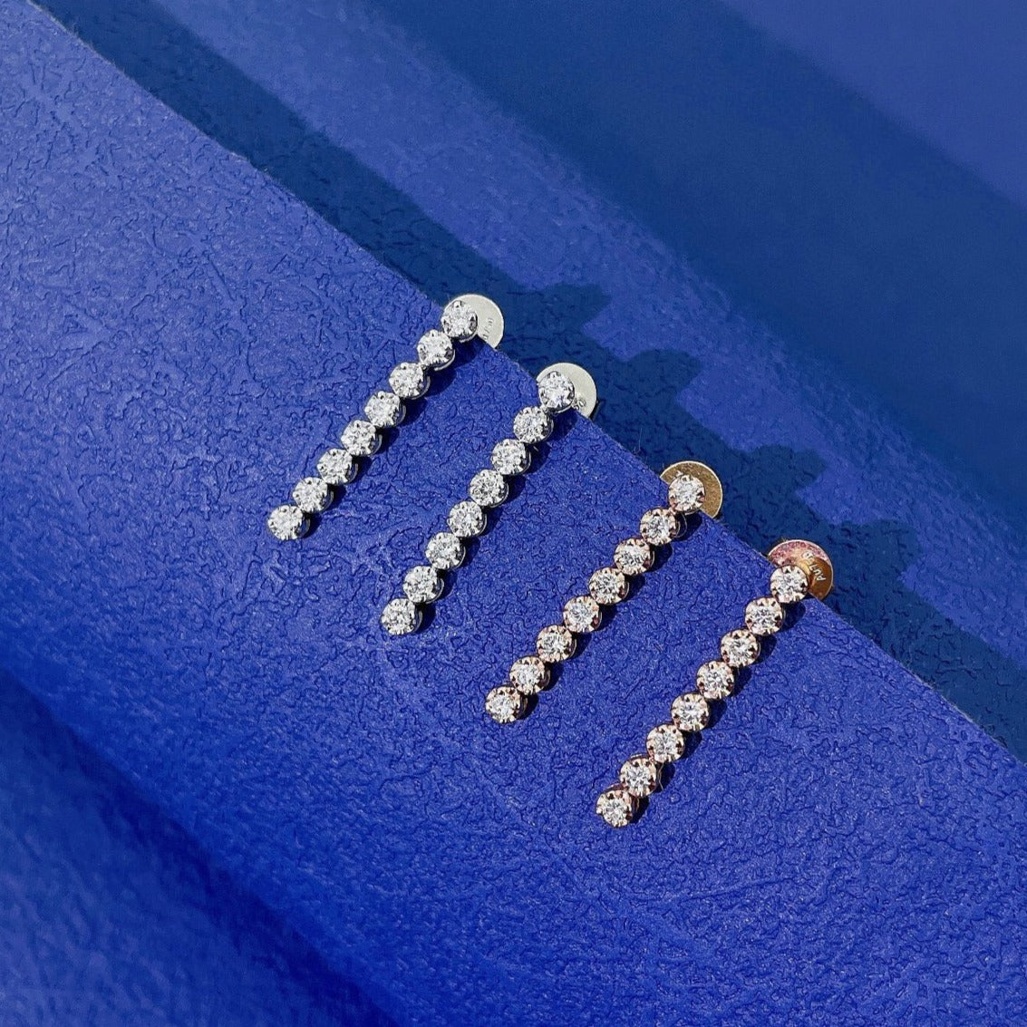 Minimalist 18K Solid Gold Diamond Dangle Stud Earrings