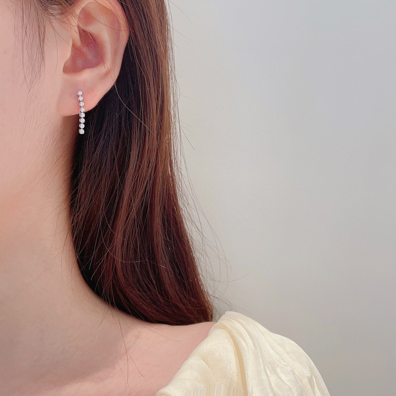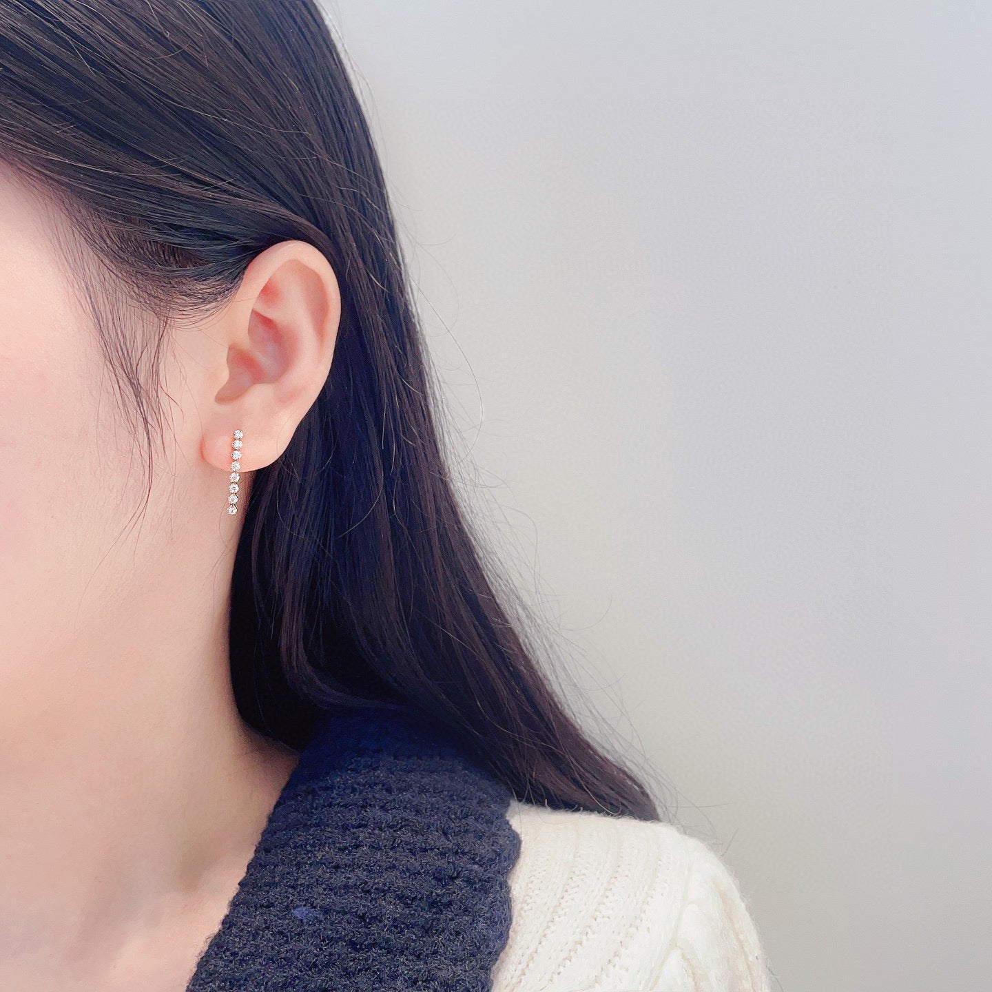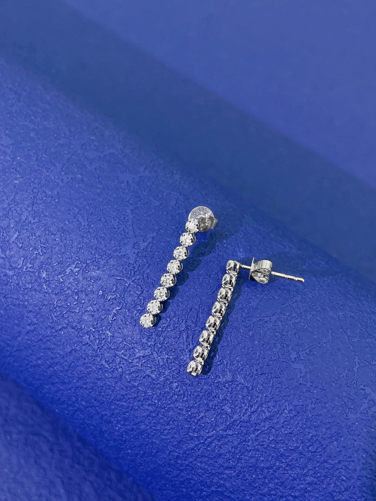 Minimalist 18K Solid Gold Diamond Dangle Stud Earrings