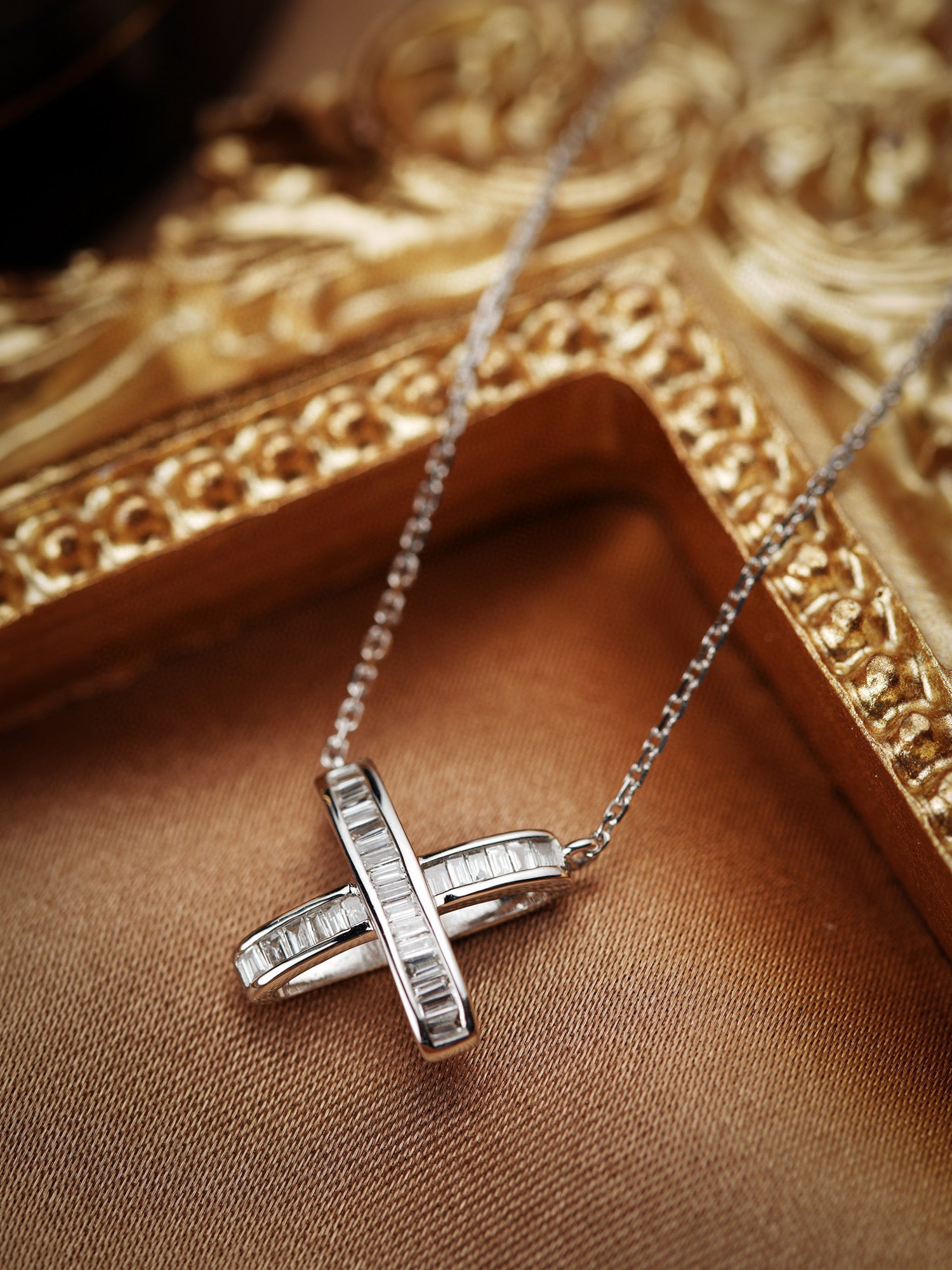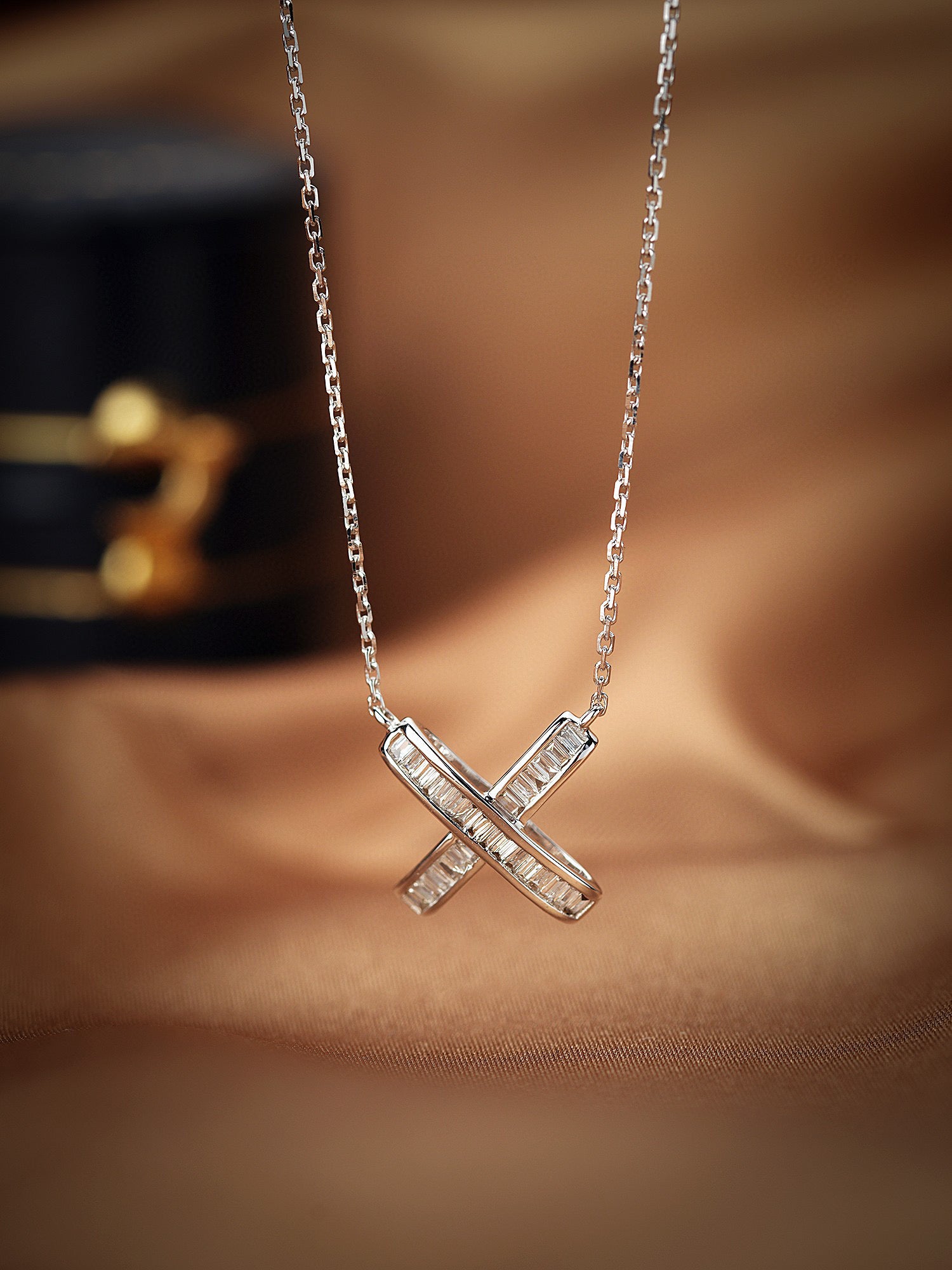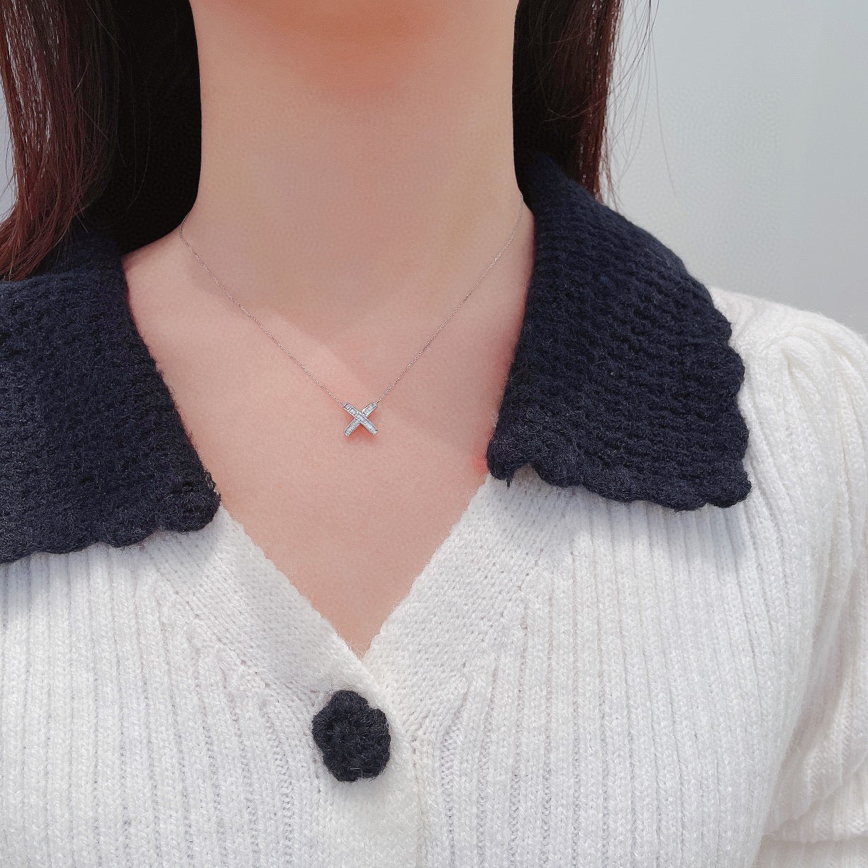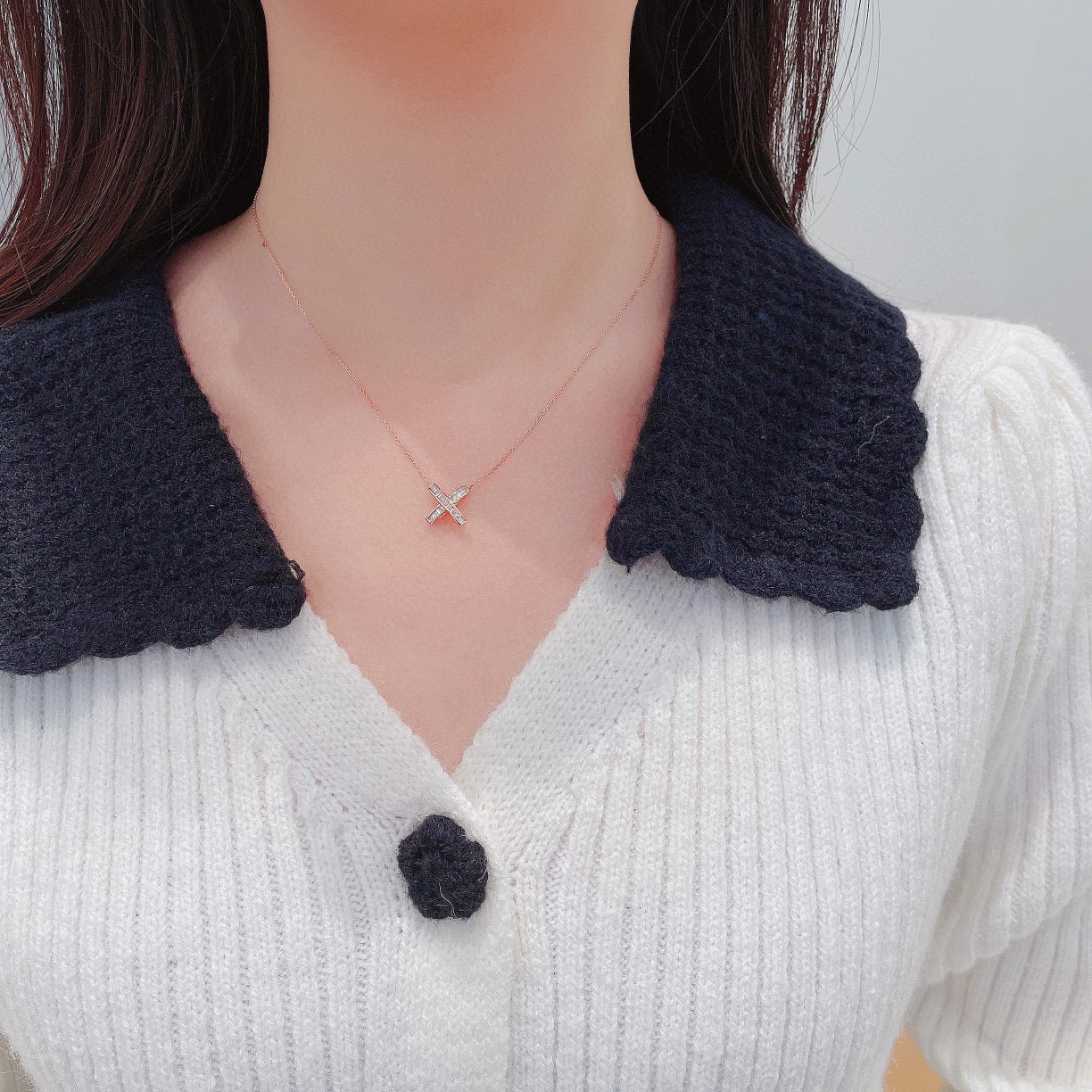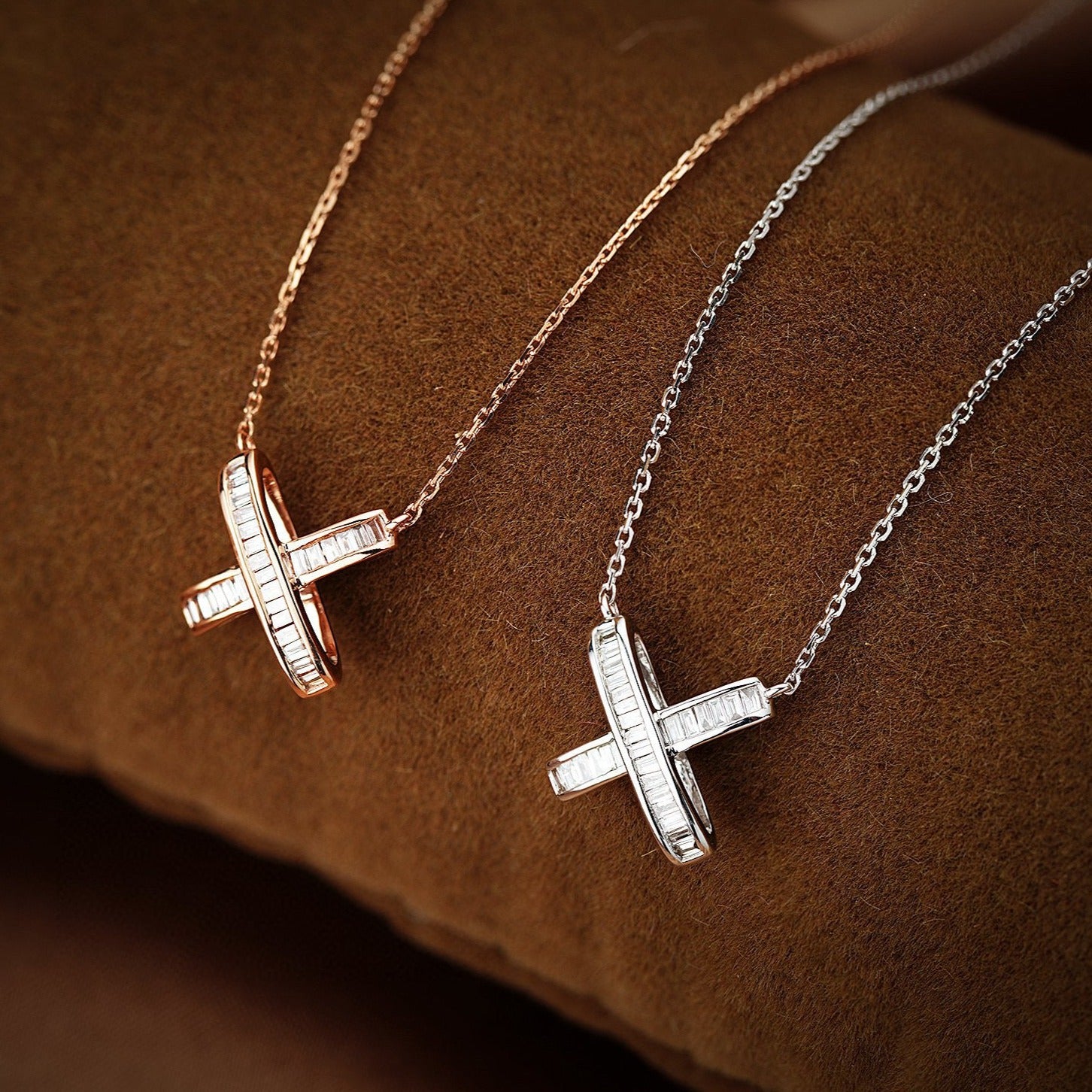 Minimalist 18K Solid Gold Full Diamond X Pendant Necklace