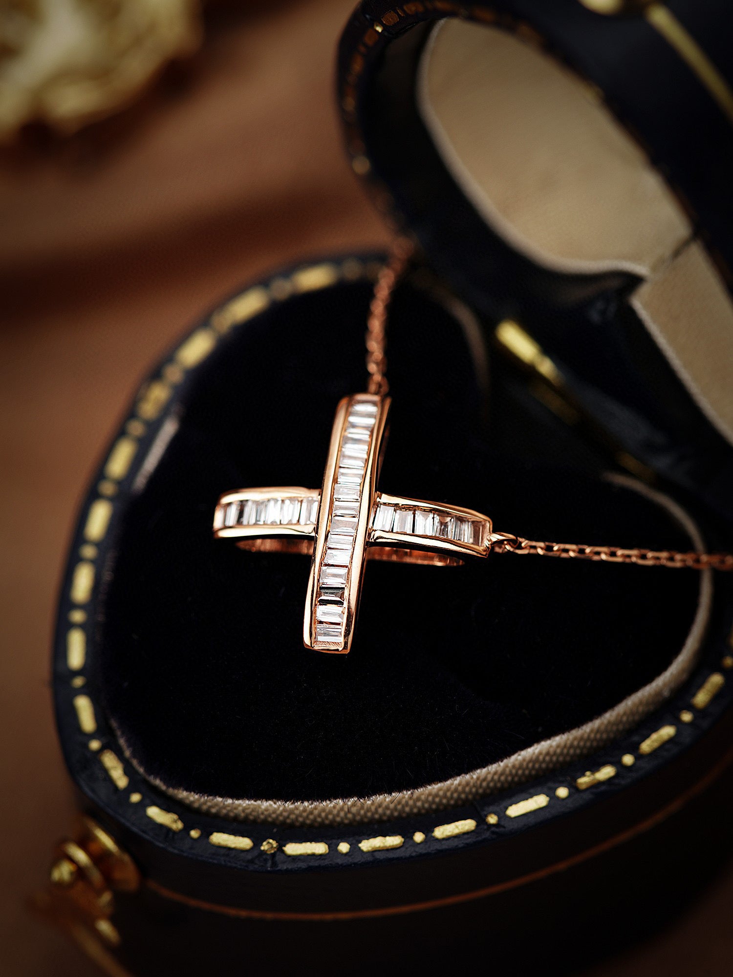 Item: Vintage 18K solid Gold Real Diamond X Pendant Necklace with certification