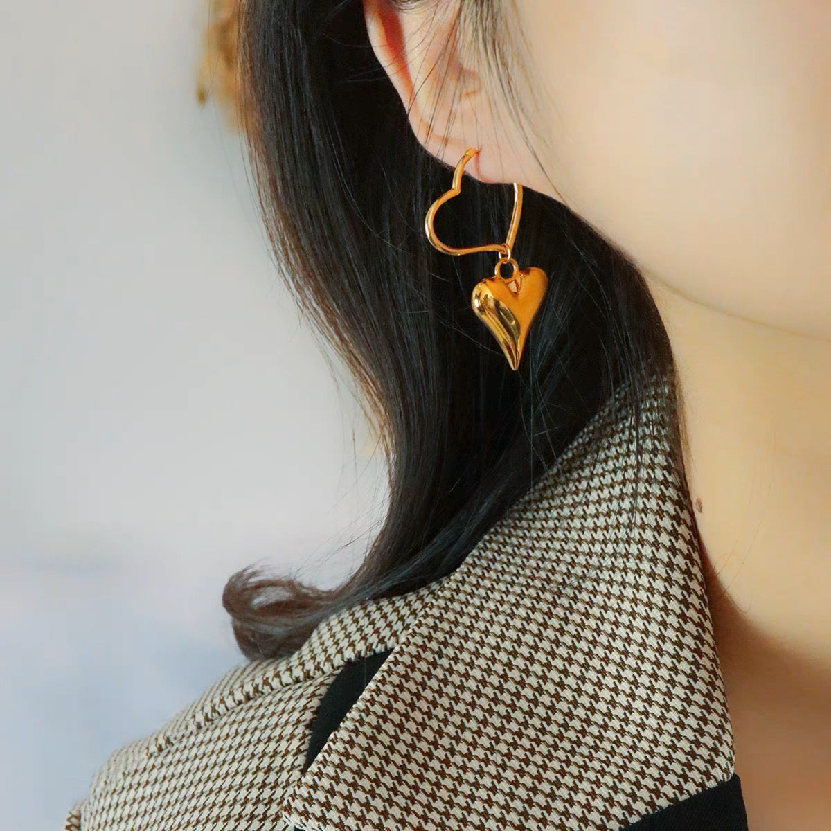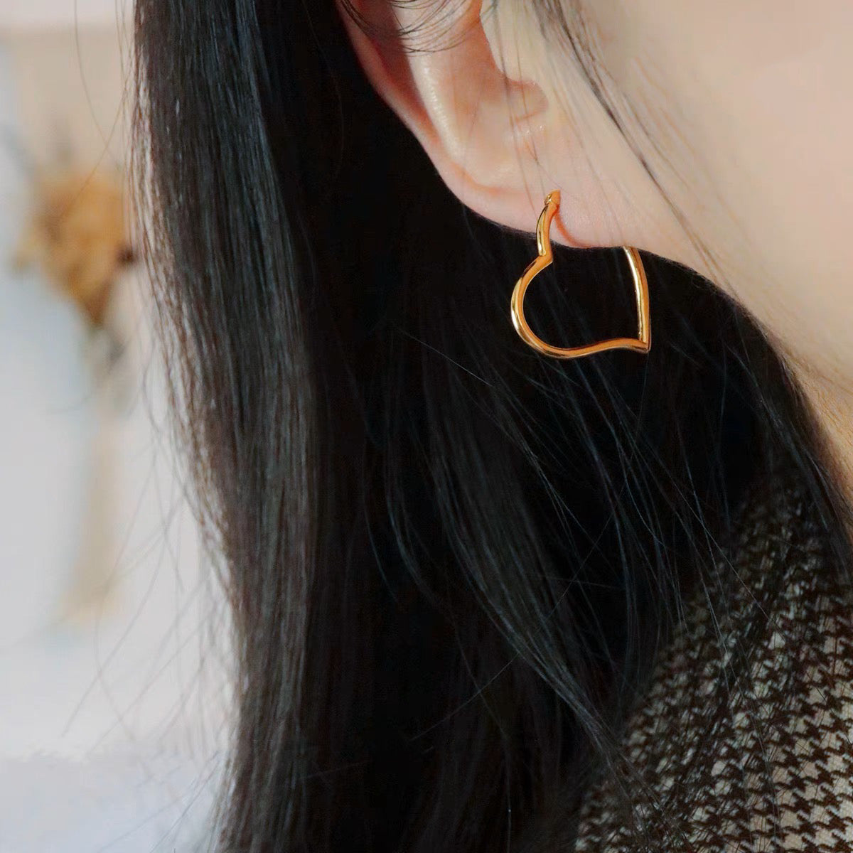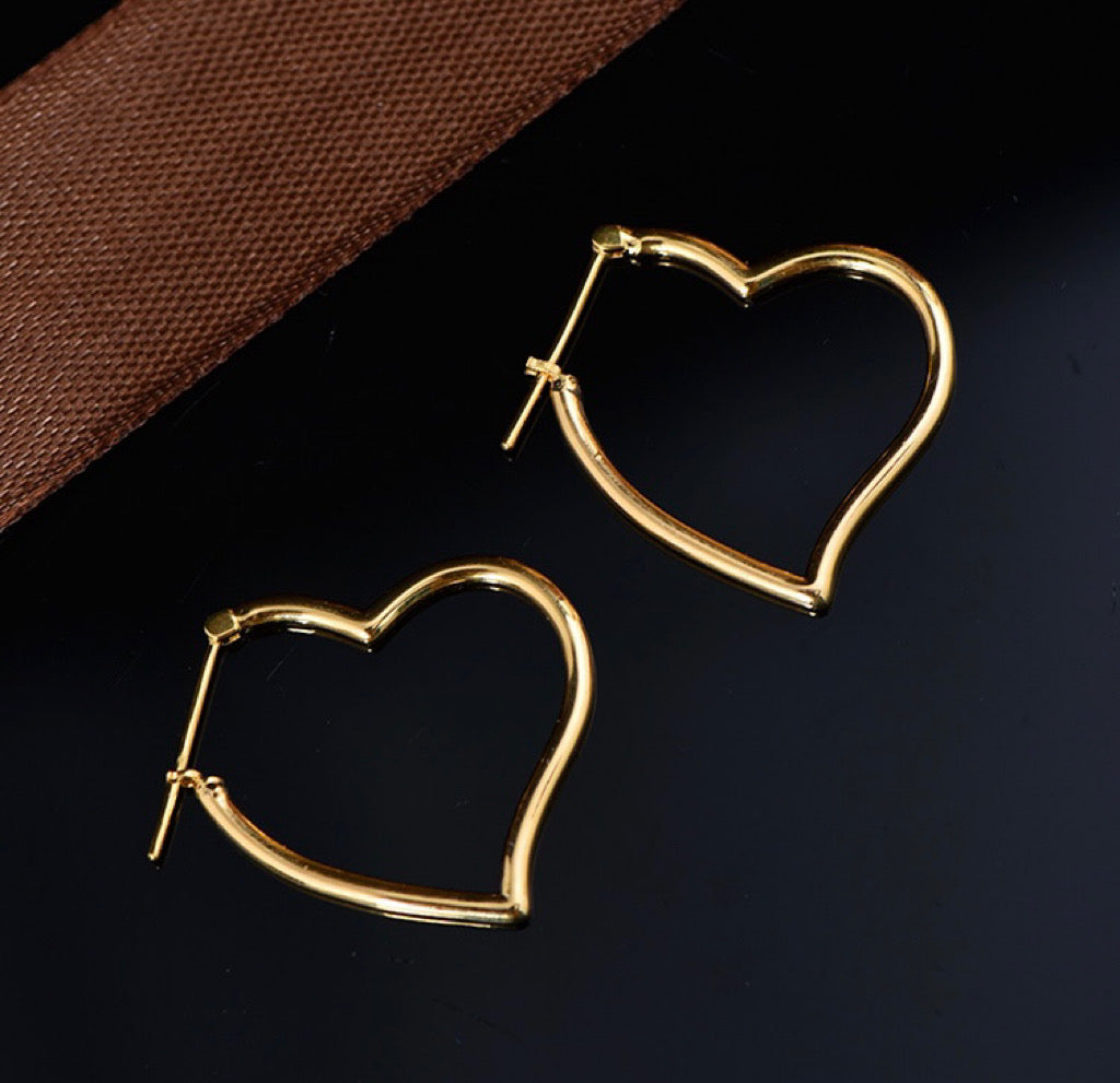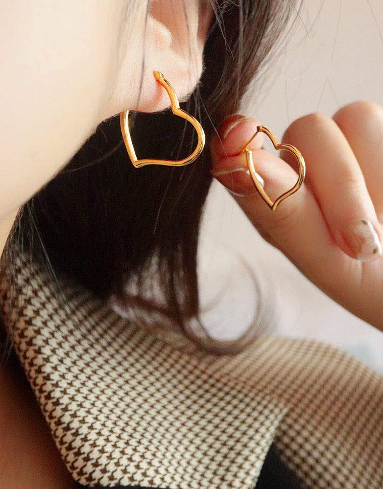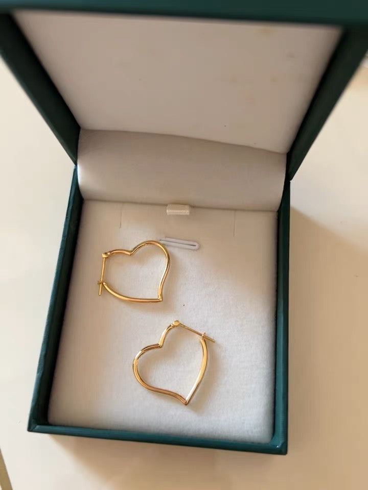 Item: classic 18K solid gold 3D Puffy Heart Hoop earrings, with certification