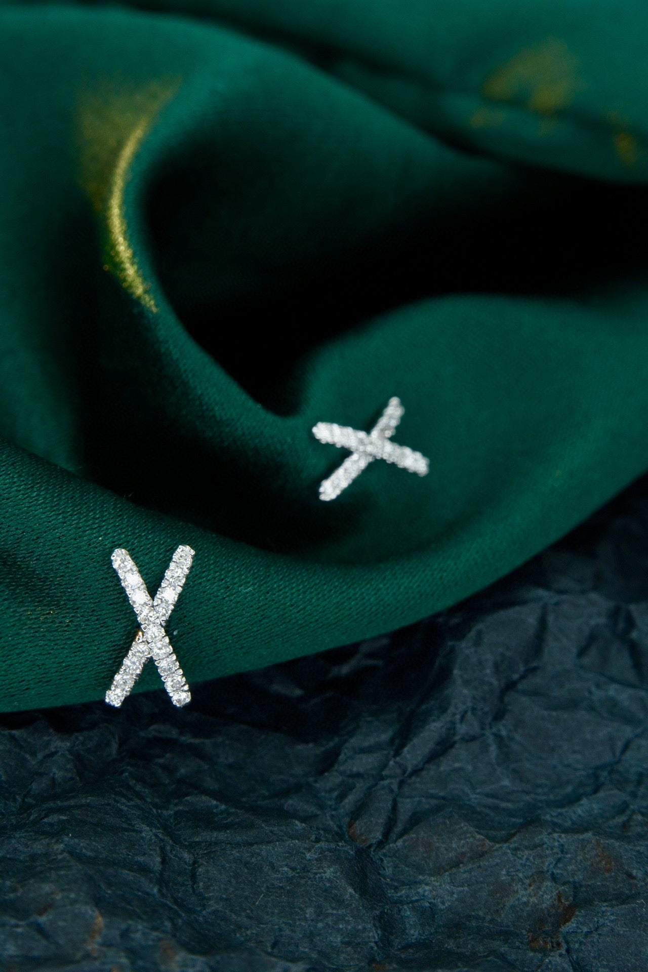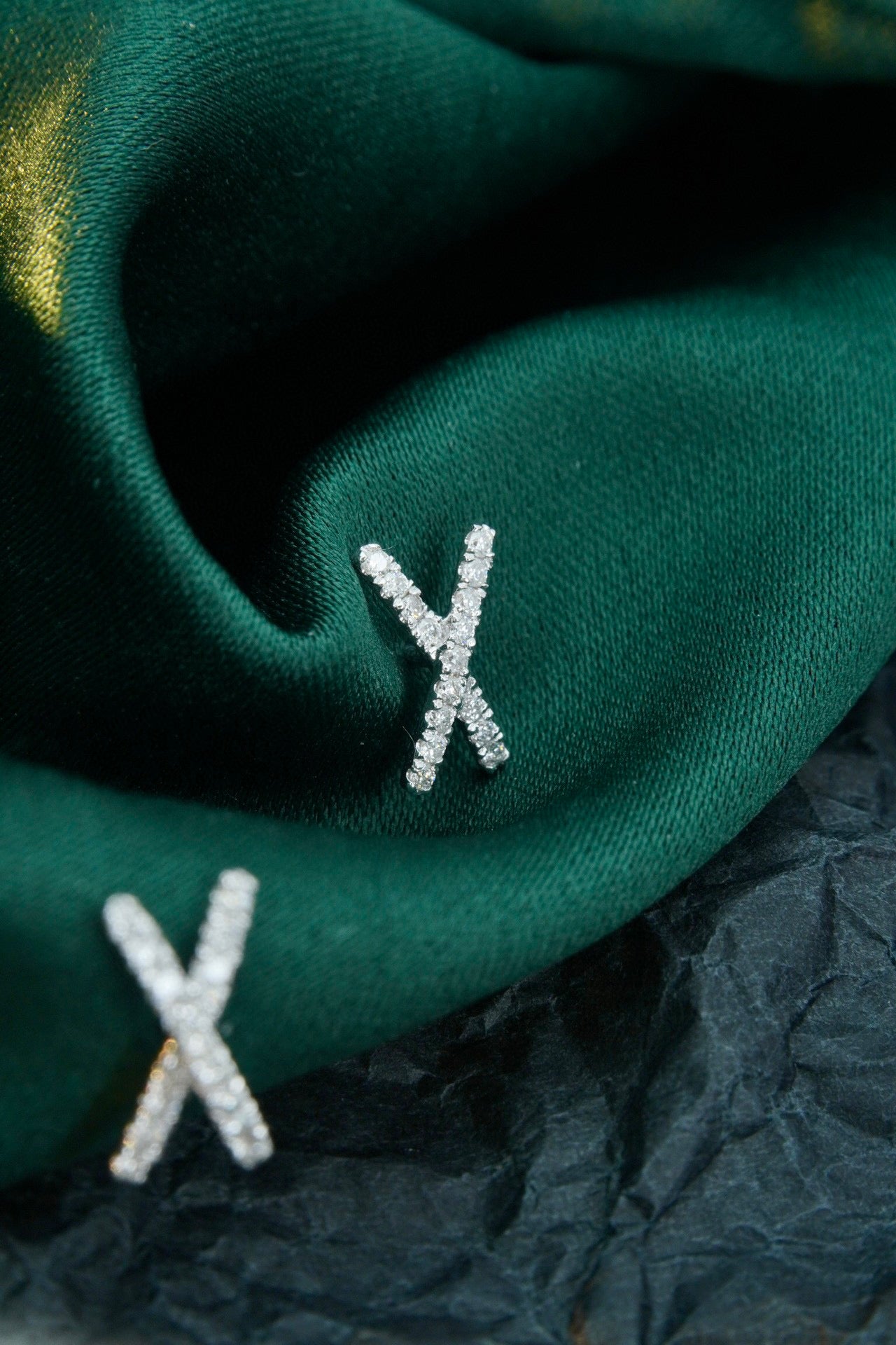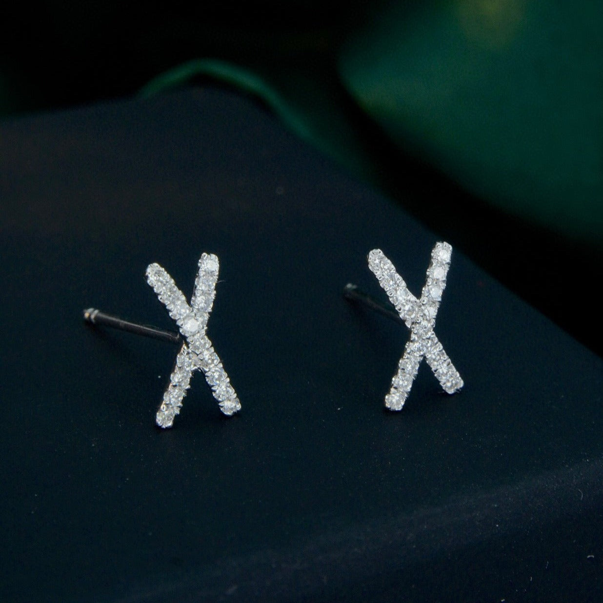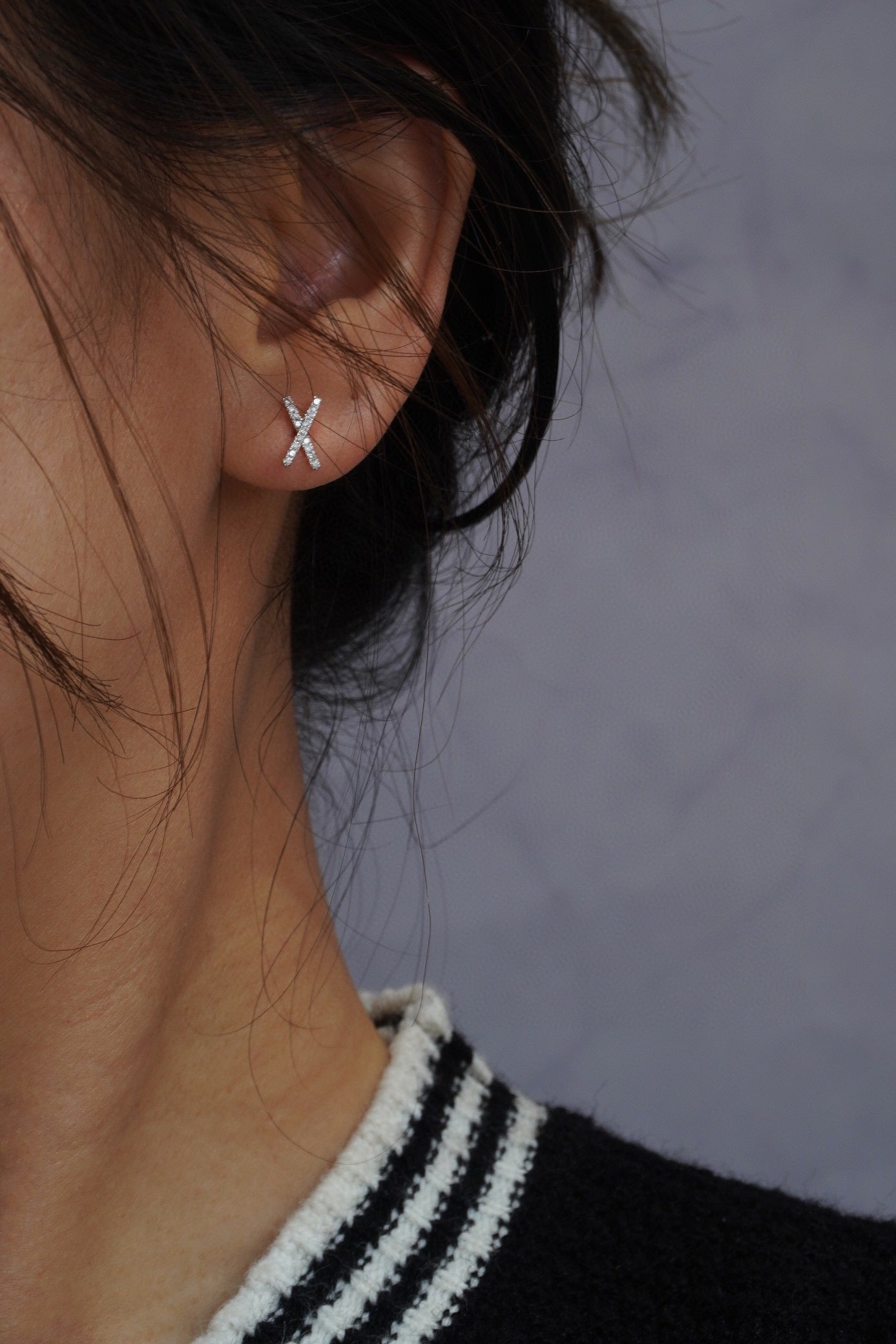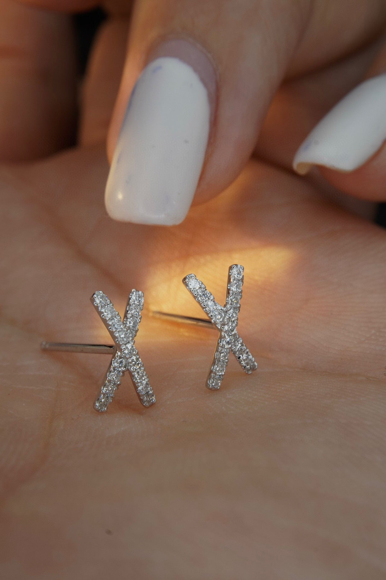 Item: classic 18K solid gold Diamond X Earrings, with certification