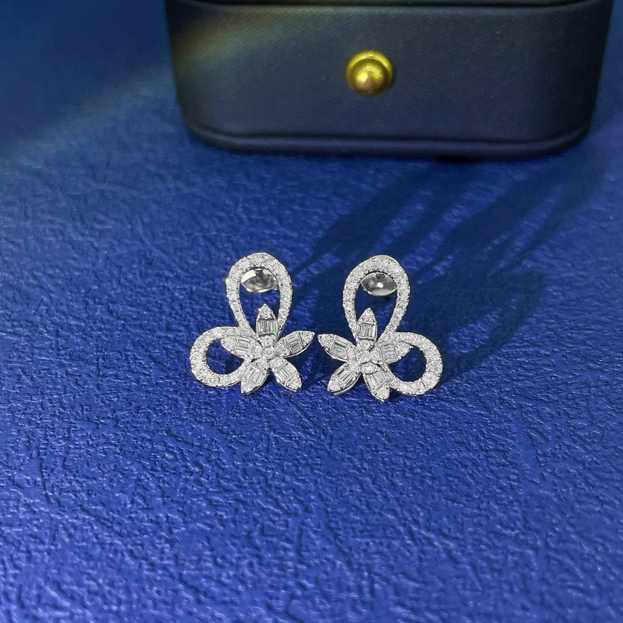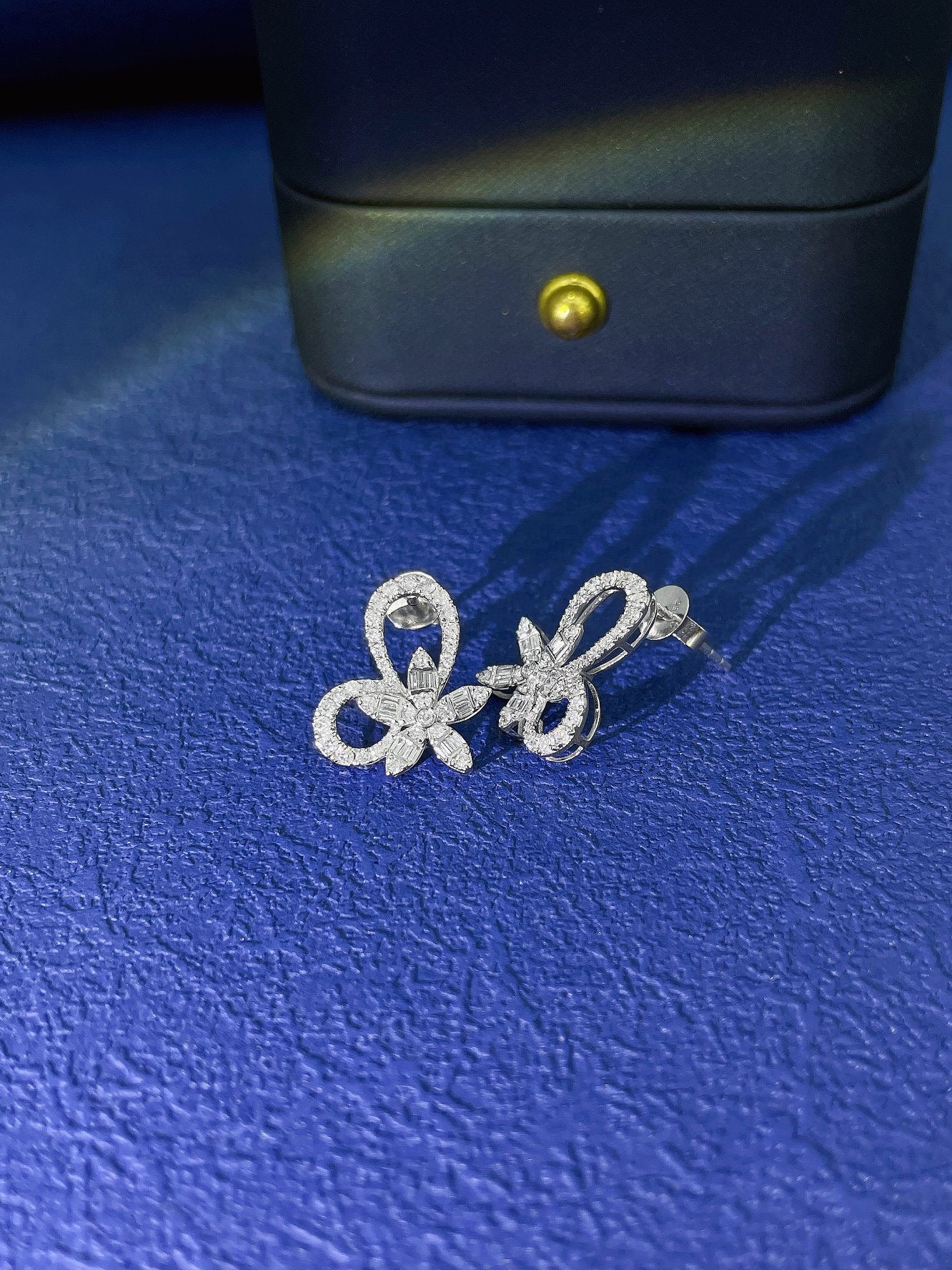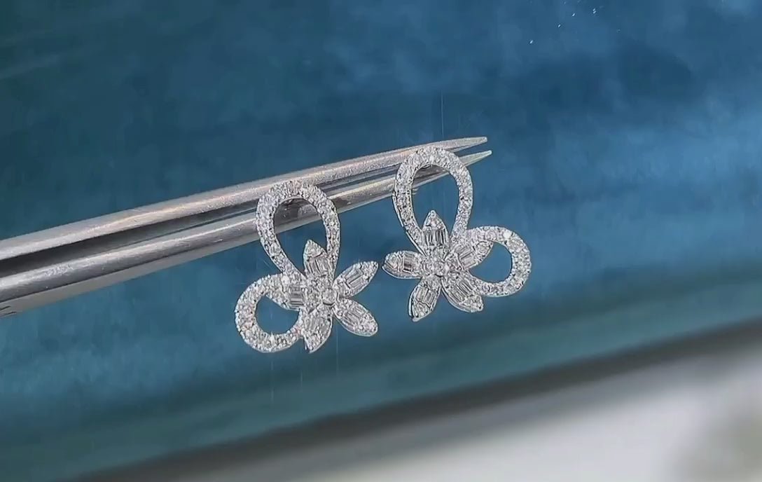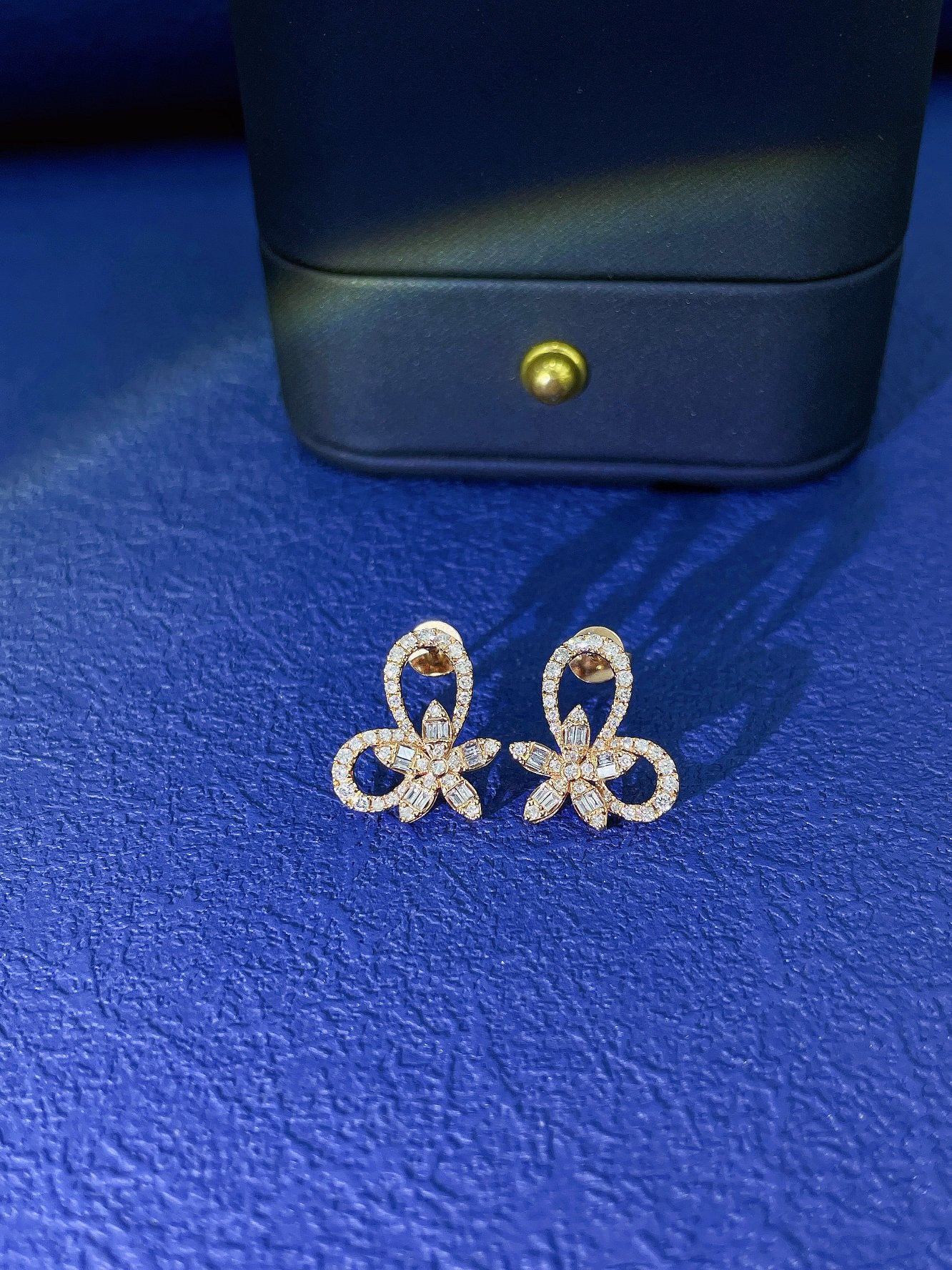 Vintage 18K Solid Gold Flower Diamond Stud Earrings