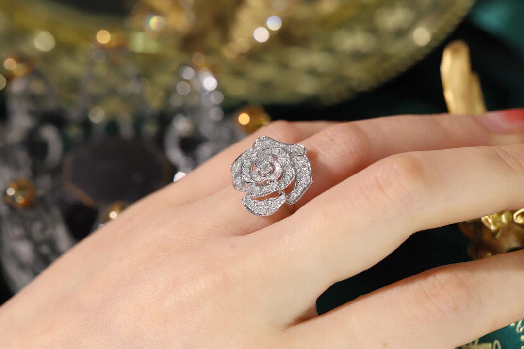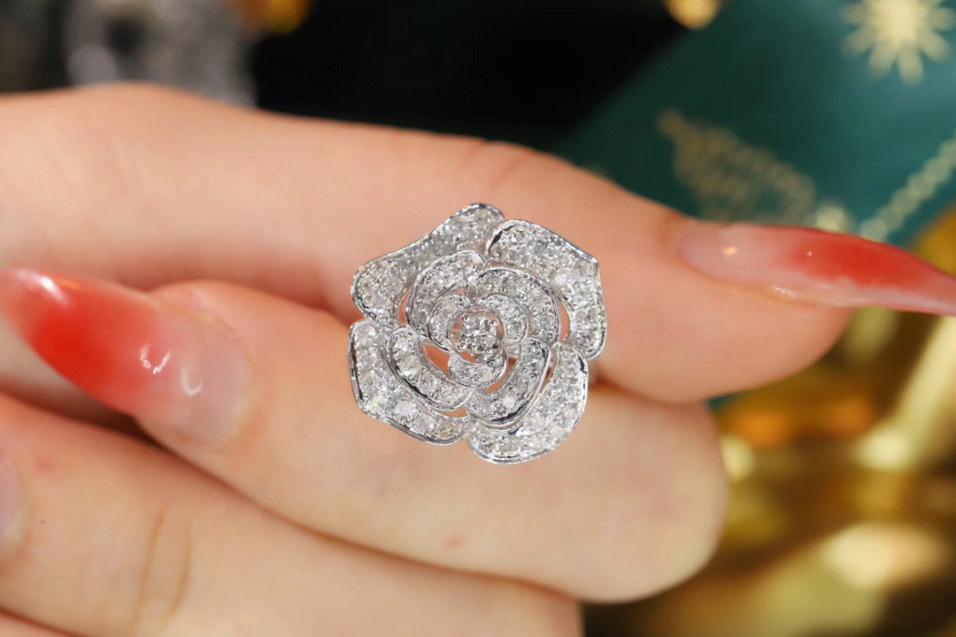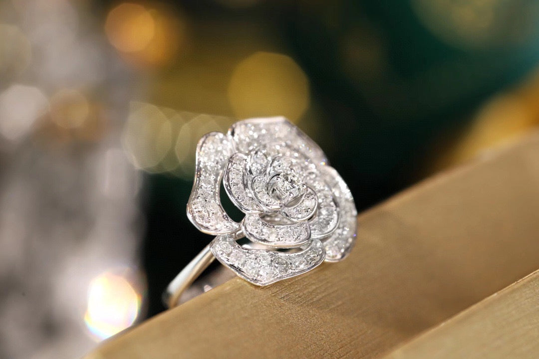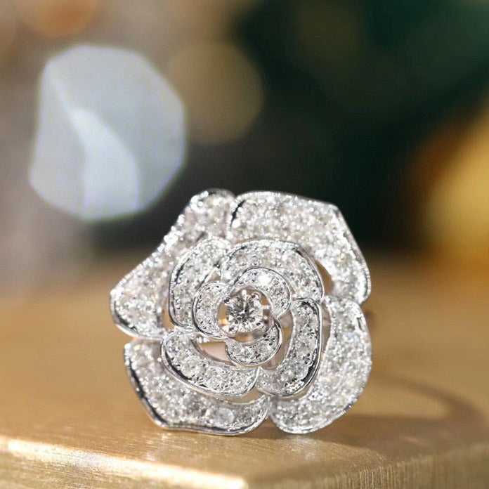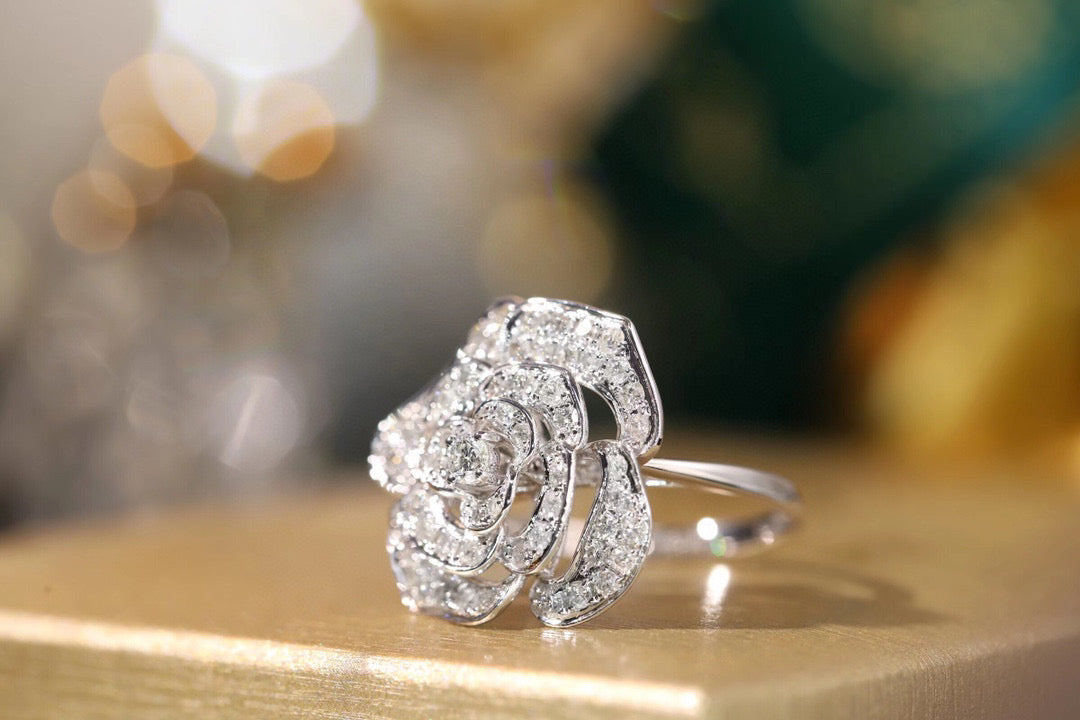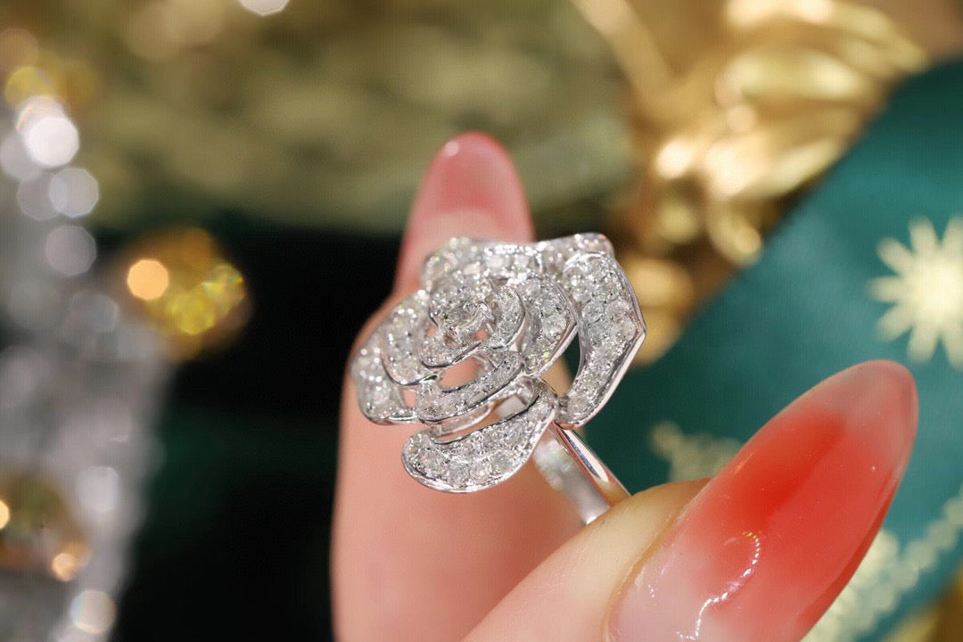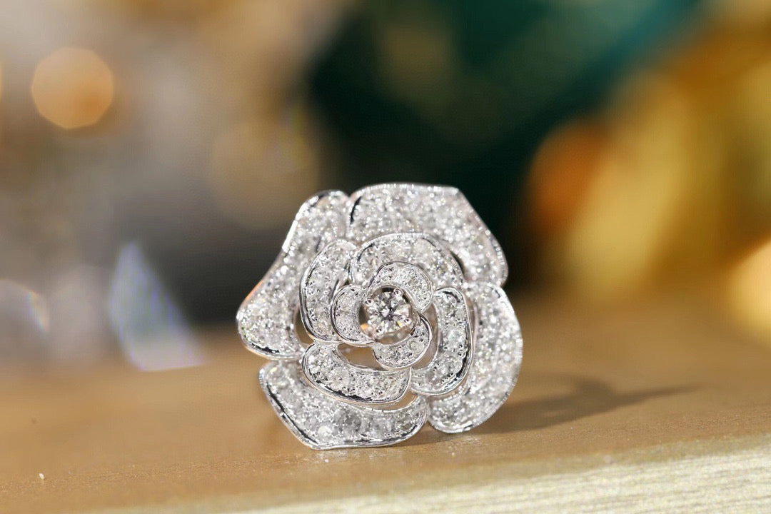 Item: classic 18K solid gold Full Diamond Rose Ring, with certification