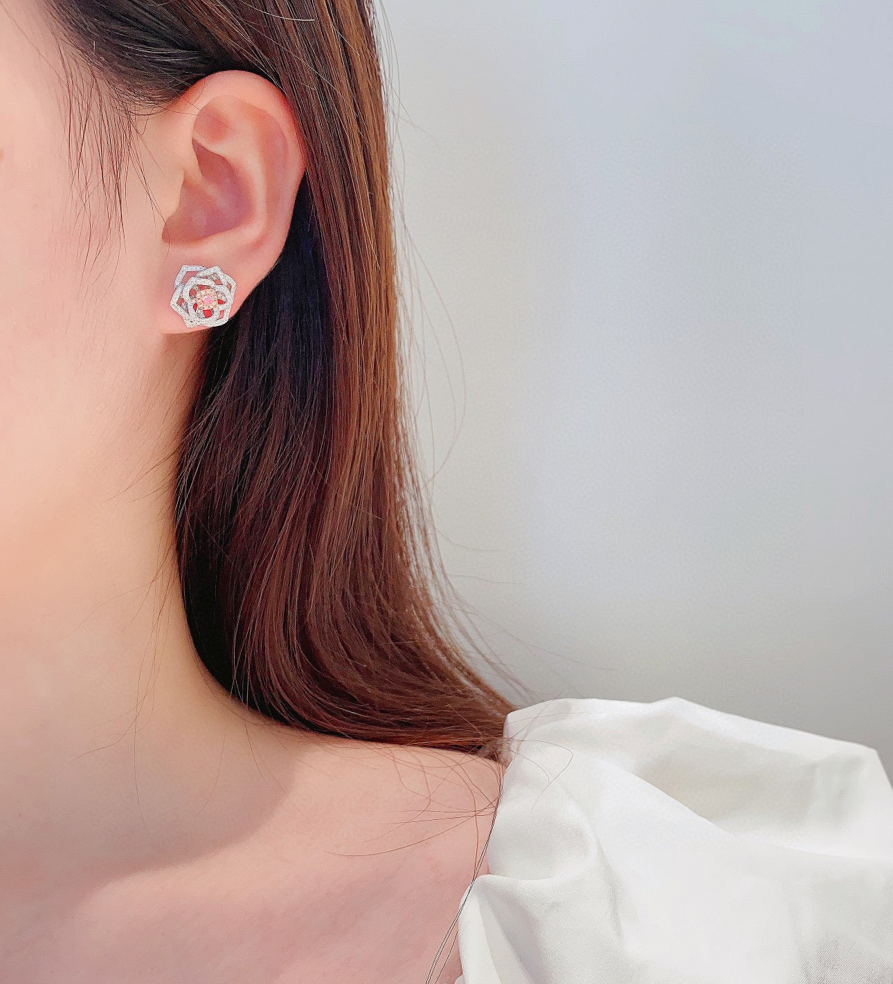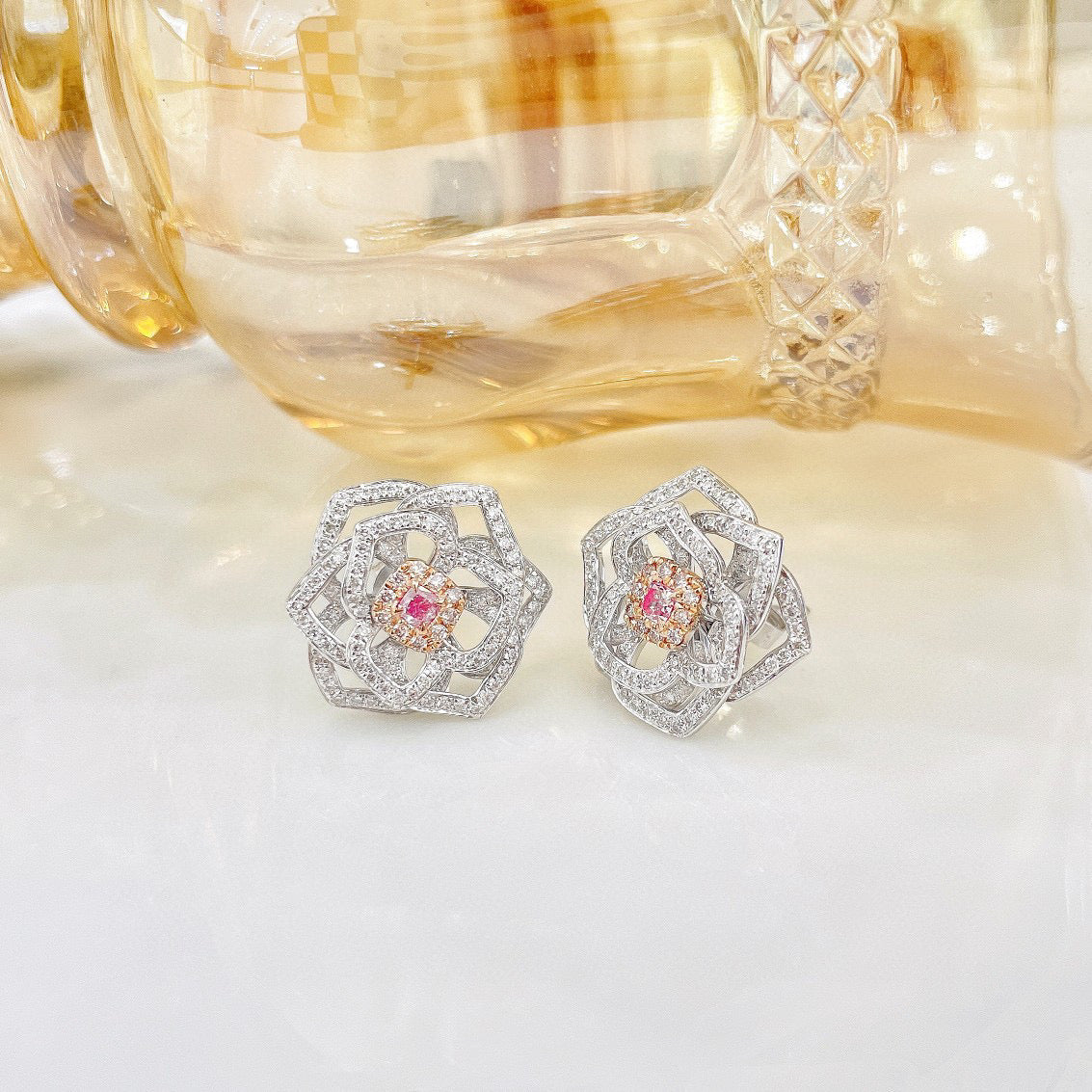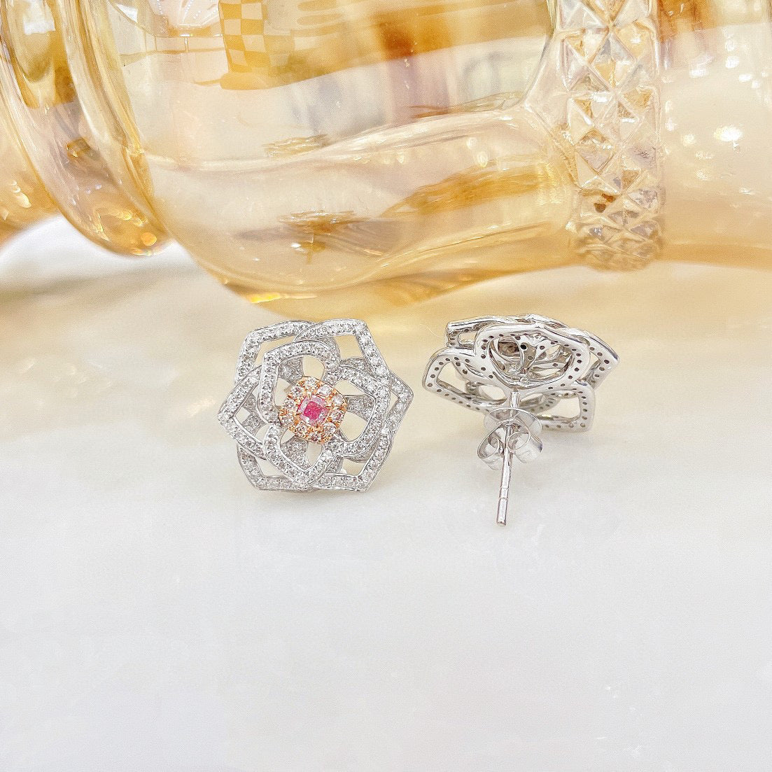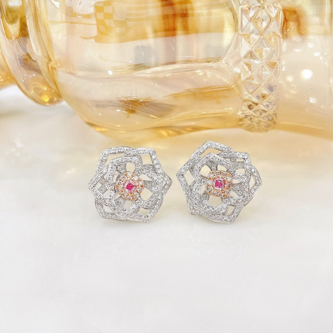 Item: classic 18K solid gold Pink Diamond Rose Stud Earrings with certification