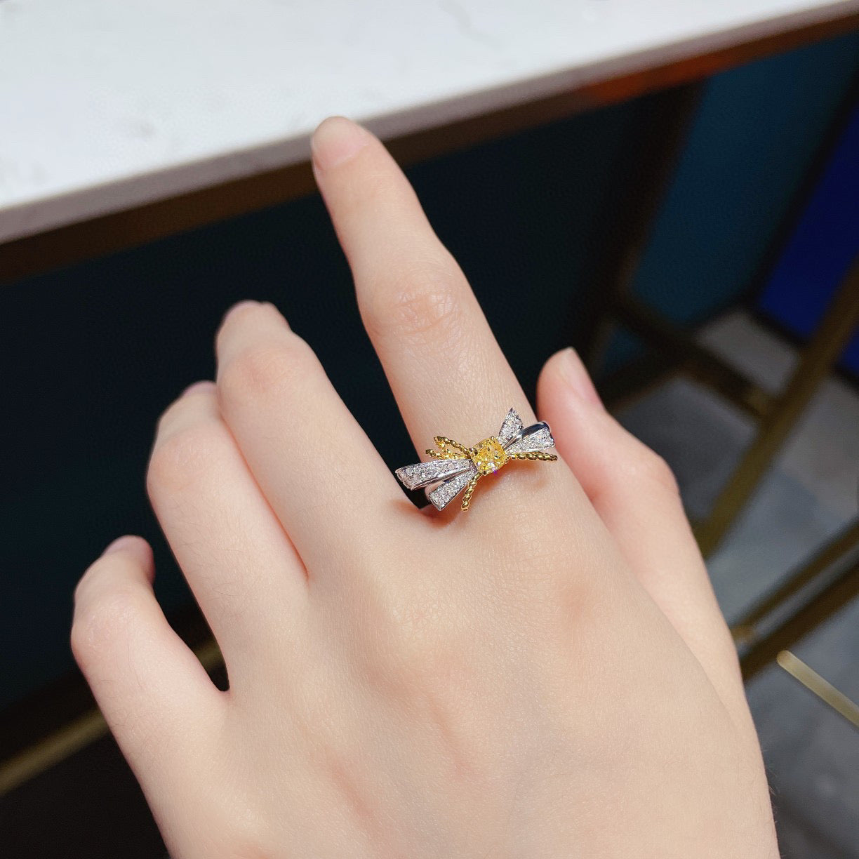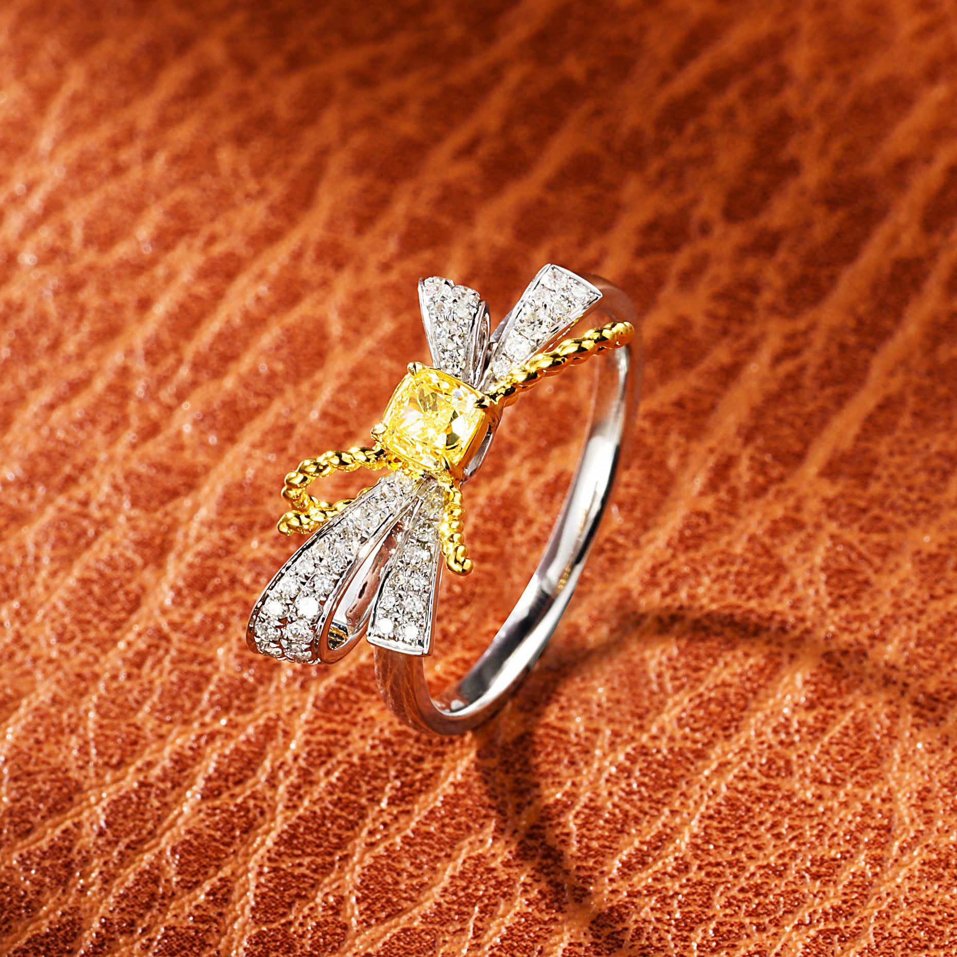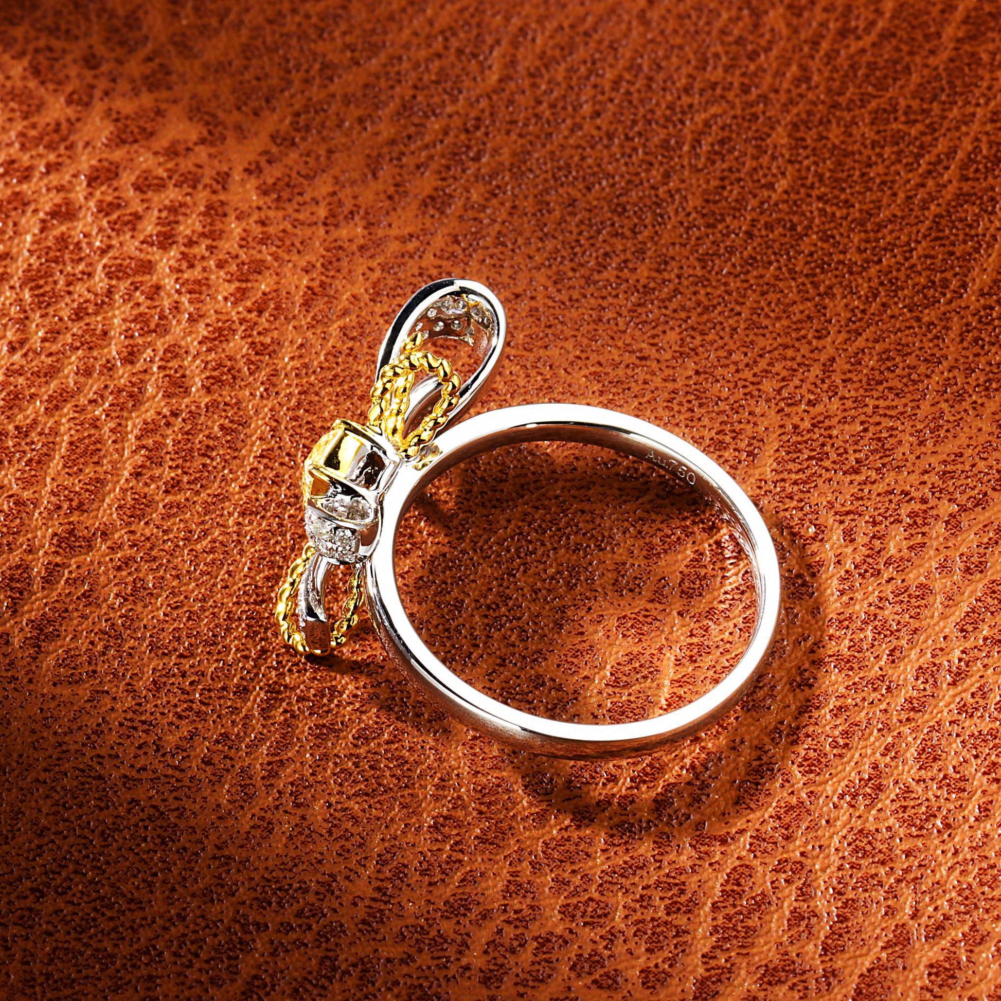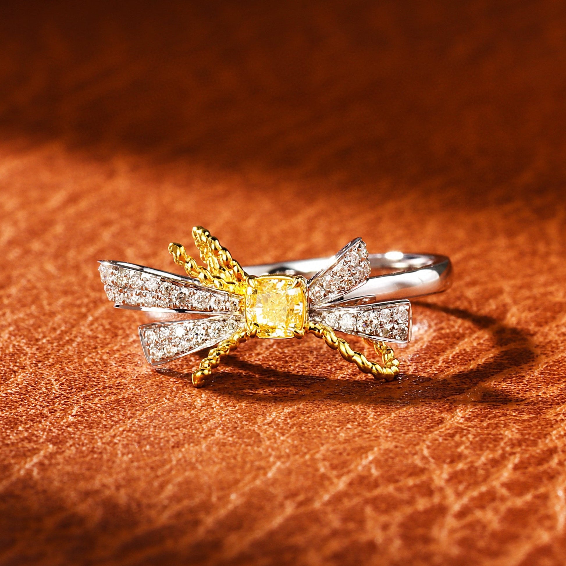 Item: Art Deco 18K solid gold Yellow Diamond Bow Ring, with certification