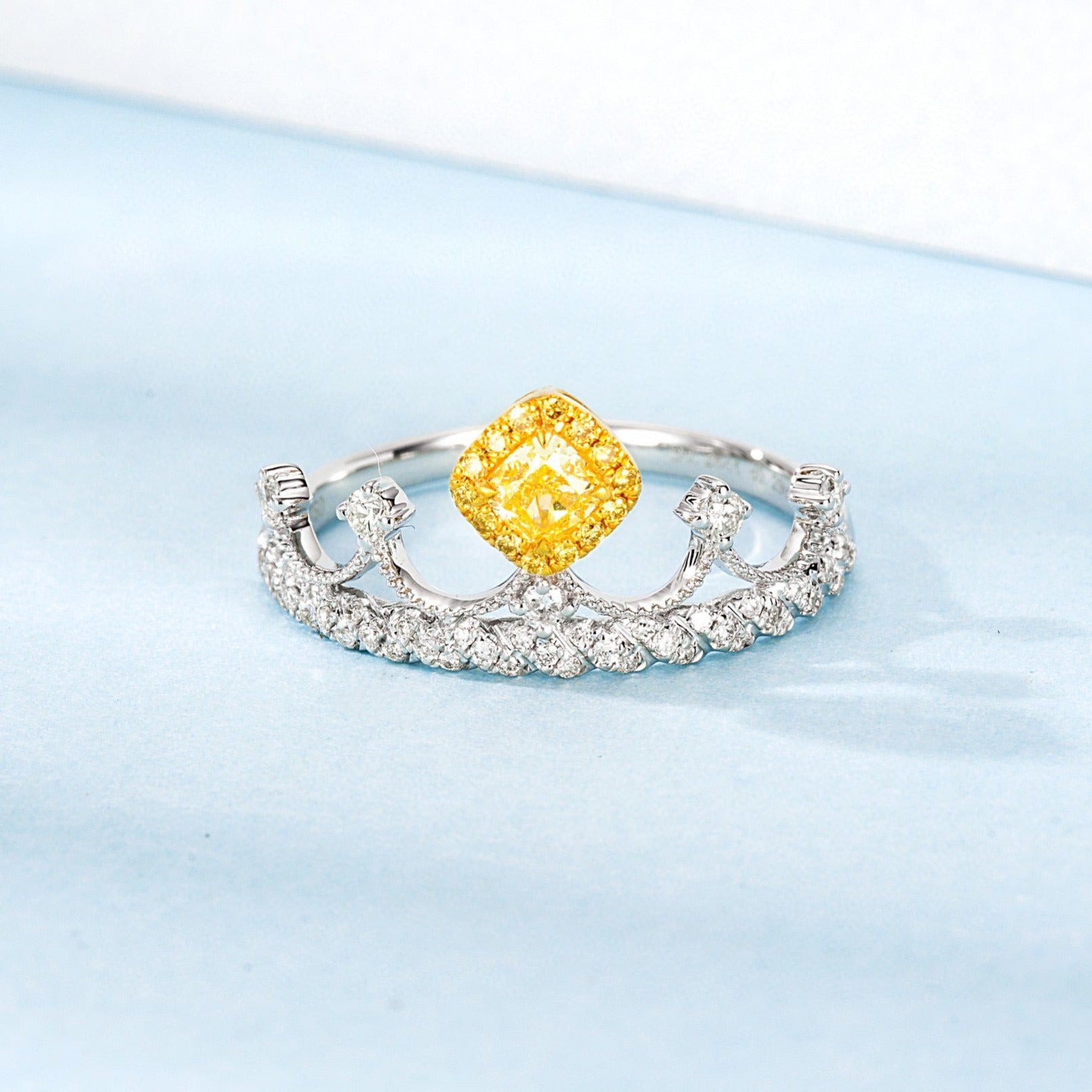 Vintage 18K Solid Gold Yellow Diamond Crown Ring, Wedding Ring