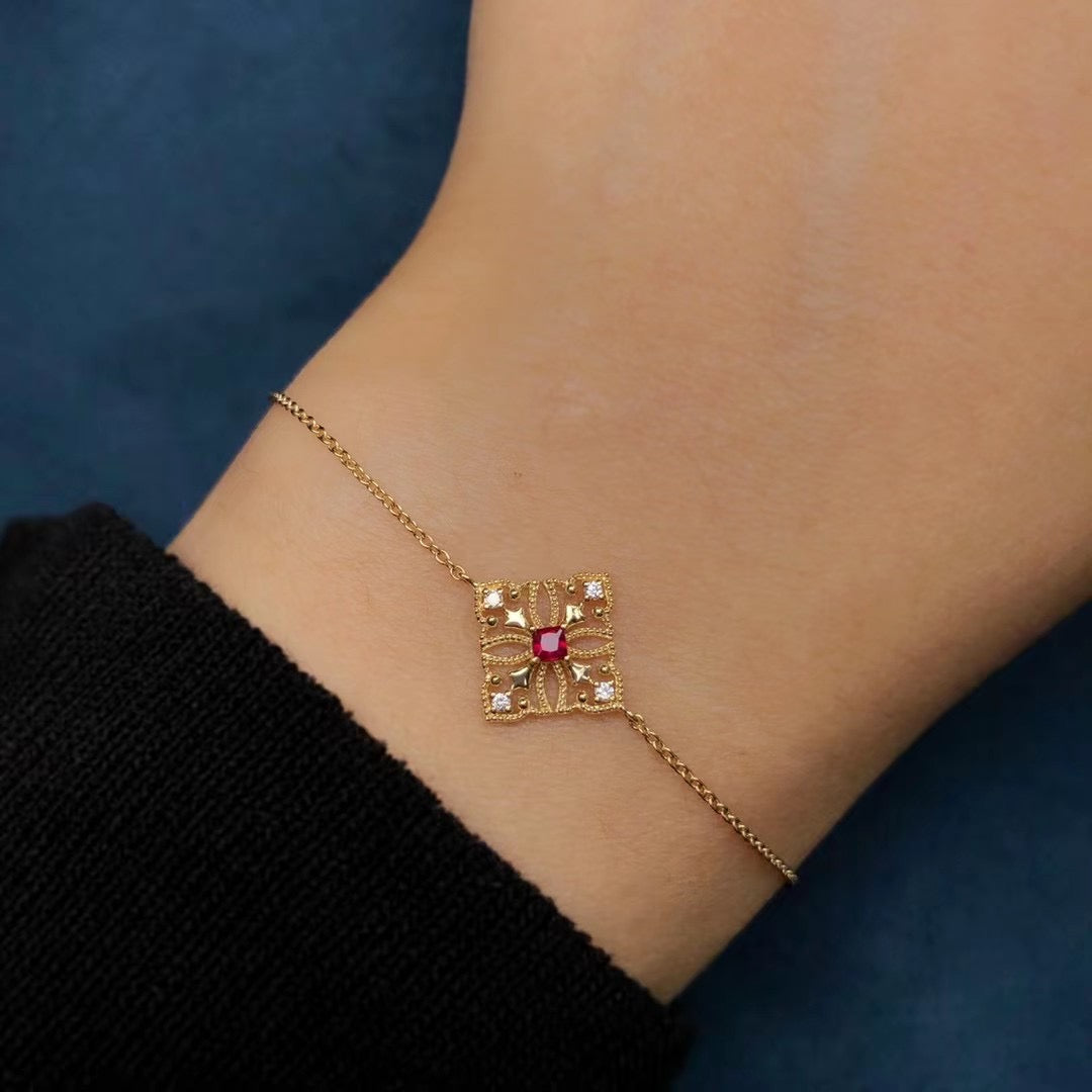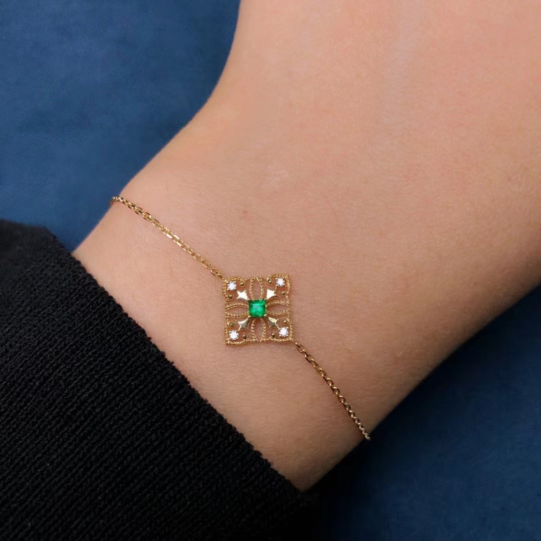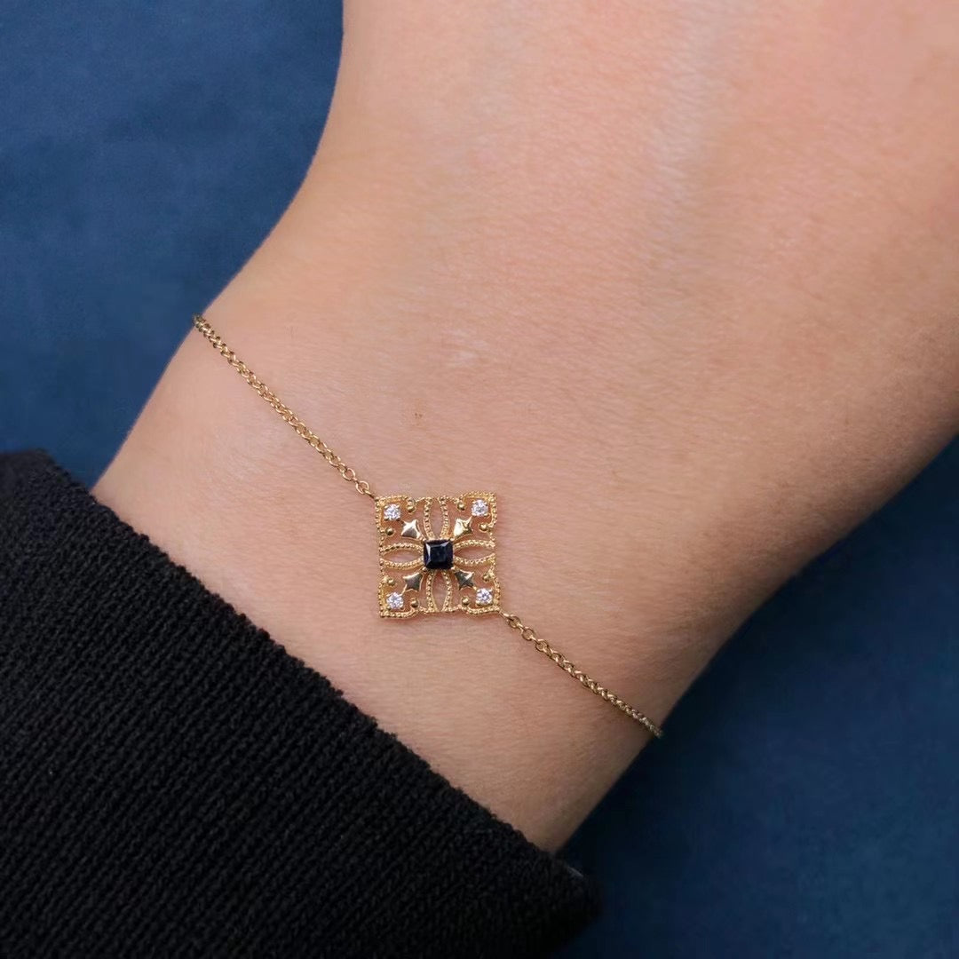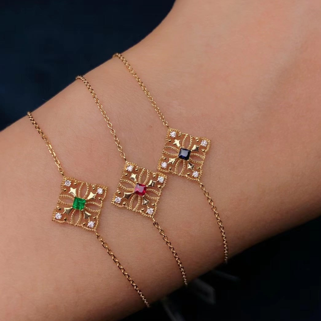 Item: sparkling solid 18K Gold Ruby, Sapphire, Emerald Diamond Bracelet / Adjustable 18K Solid Gold Diamond Bracelet